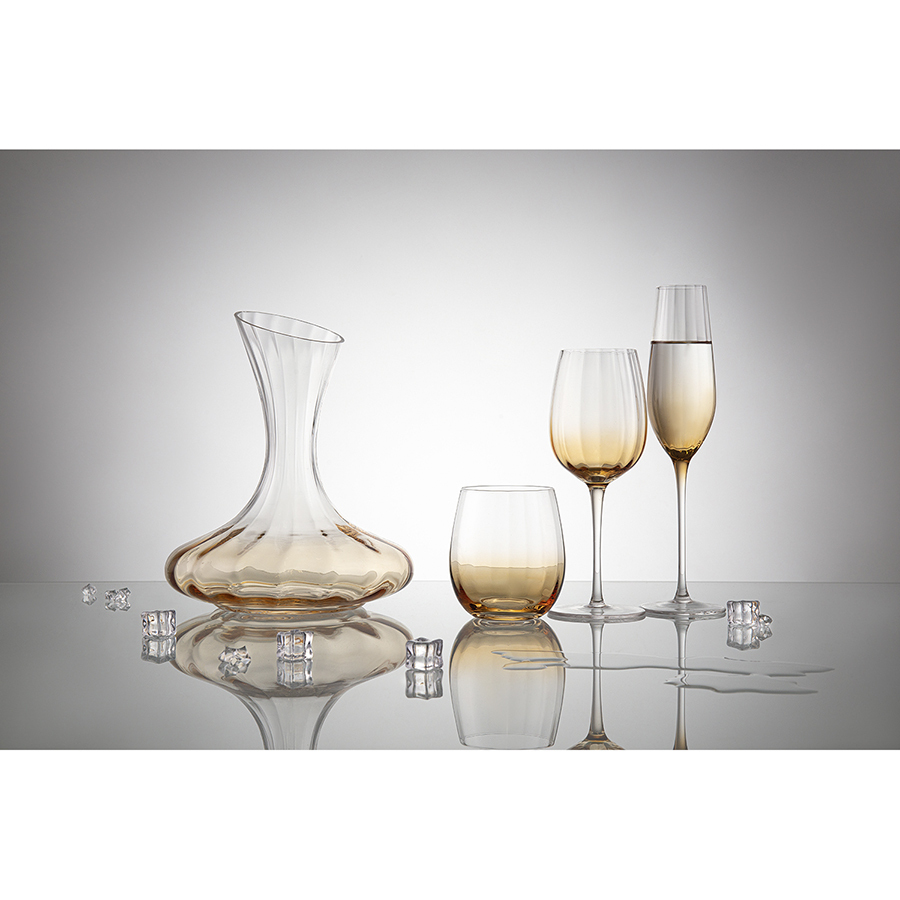 Линейка Gemma Amber привлекает лаконичным дизайном и стильным цветовым решением с теплыми янтарными акцентами. Вся посуда выполнена вручную из выдувного стекла. Такой способ производства позволяет играть с линиями и изгибами, создавая уникальные и неповторимые продукты. Изделия получаются более прочными, но при этом тоньше и прозрачнее аналогов из обычного стекла.