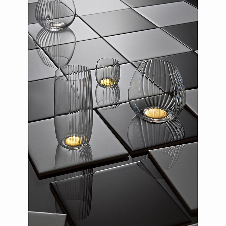 Уникальная дизайнерская коллекция Alice позволит вам окунуться в сказочную атмосферу страны чудес, где реальность превращается в фантазию, а зазеркалье открывает новые грани красоты! Каждый бокал и стакан – это неповторимое произведение искусства из выдувного стекла ручной работы. Главной особенностью линейки является необычное сочетание гладких и рельефных поверхностей, а также золотистые акценты, которые создают волшебные блики и усиливают блеск стеклянных граней.