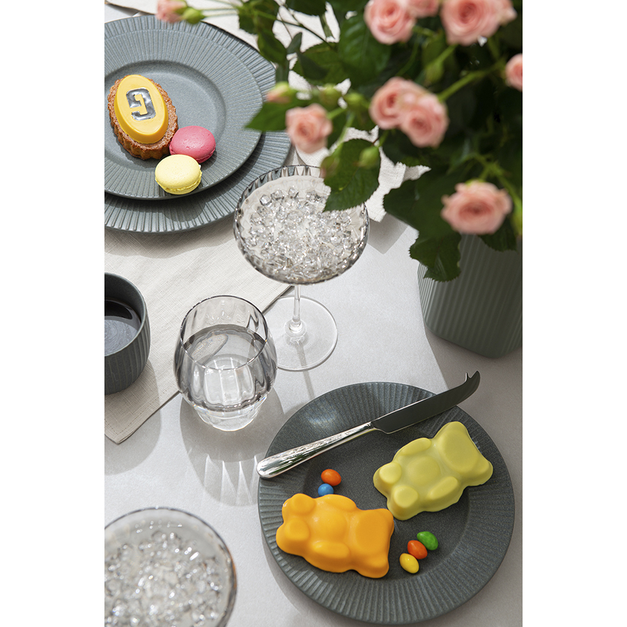Линейка Gemma Agate привлекает лаконичным дизайном и стильным цветовым решением в дымчато-серых тонах. Вся посуда выполнена вручную из выдувного стекла. Такой способ производства позволяет играть с линиями и изгибами, создавая уникальные и неповторимые продукты. Изделия получаются более прочными, но при этом тоньше и прозрачнее аналогов из обычного стекла.