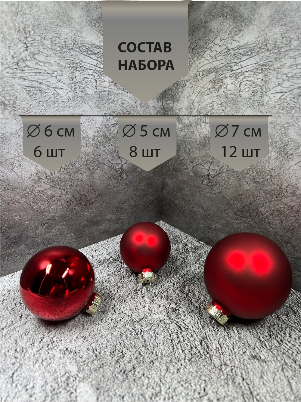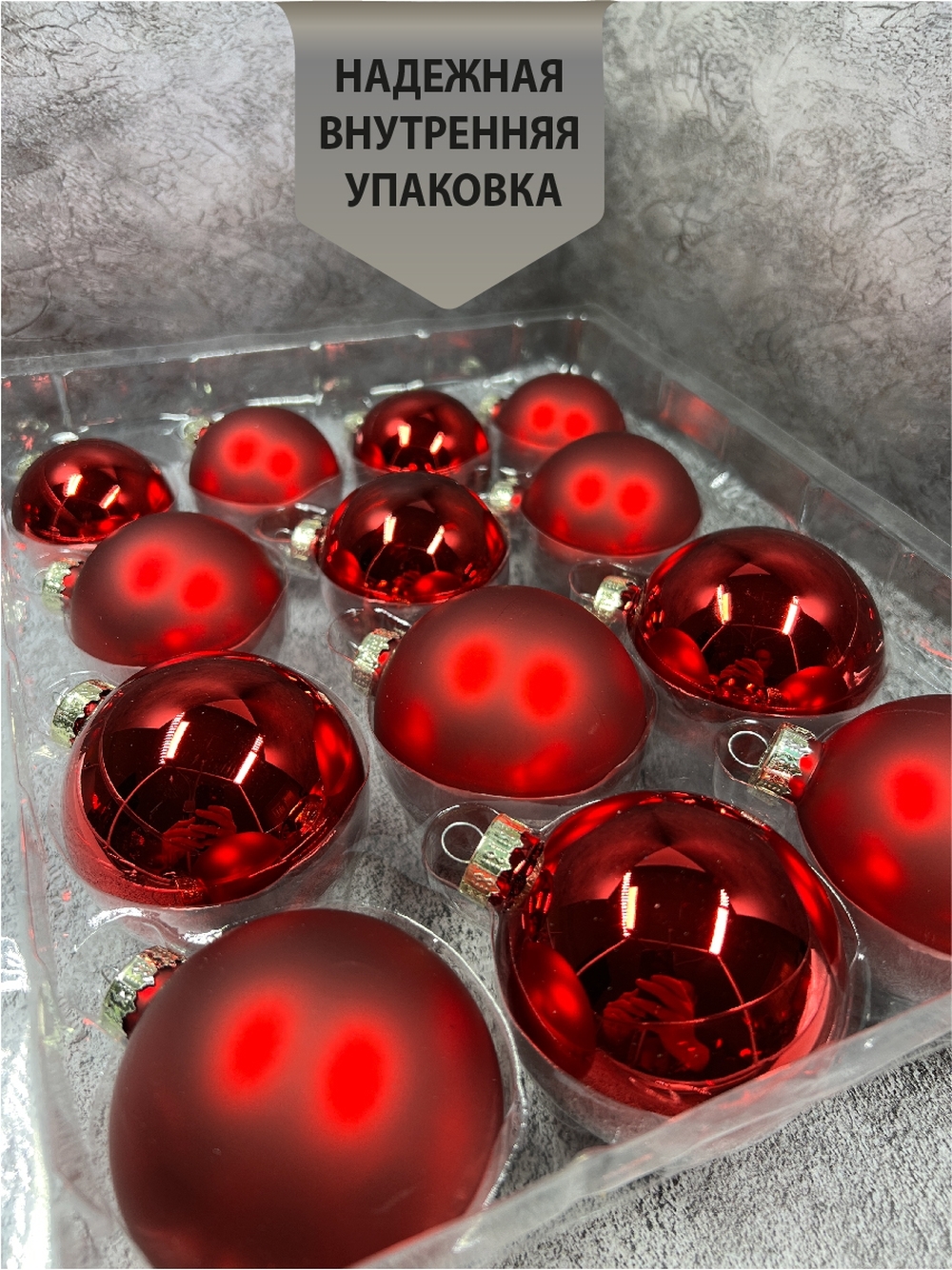Набор стеклянных шаров красный 26 шт в коробке.