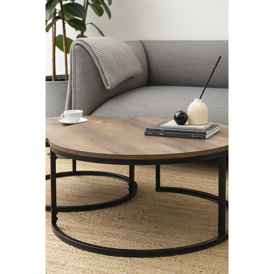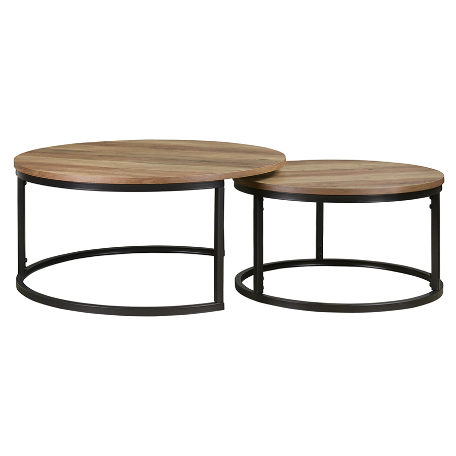 Материалы: МДФ, железо. Диаметр столиков: 60 см и 80 см. Высота столиков: 33,5 см и 43,5 см. Цвет: орех.