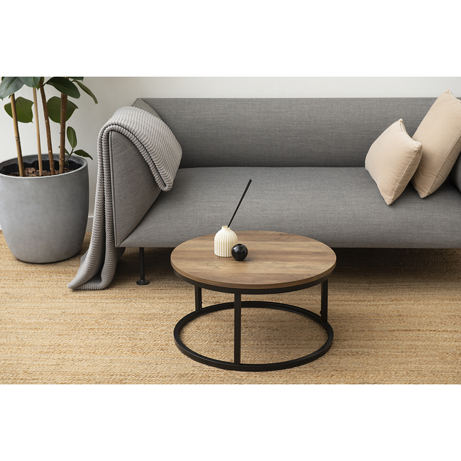Кофейные столики Stanley имеют столешницу из МДФ, стилизованную под древесину ореха, и устойчивое металлическое основание с износостойким порошковым покрытием. Благодаря компактности такой набор идеально подходит для малогабаритных помещений, легко помещается в ограниченном пространстве лоджии и балкона. Качественные, практичные материалы обеспечивают изделиям долгий срок службы.