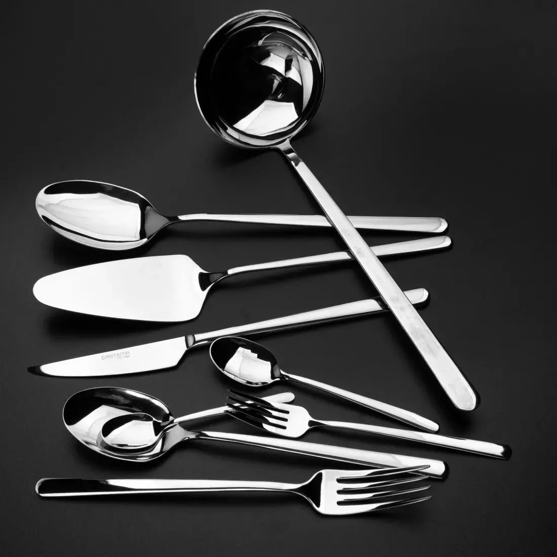 Современные производители столовых приборов имеют намного больше возможностей, нежели их предшественники. Последние разработки в области промышленного оборудования подарили им высокоточные станки, способные до мелочей воспроизвести силуэт вилки или ложки, придуманный дизайнером. Именно такое оборудование и используется на производстве компании Cristema. Благодаря ему столовые приборы приобретают идеально пропорциональные силуэты и максимально ровные линии абриса.