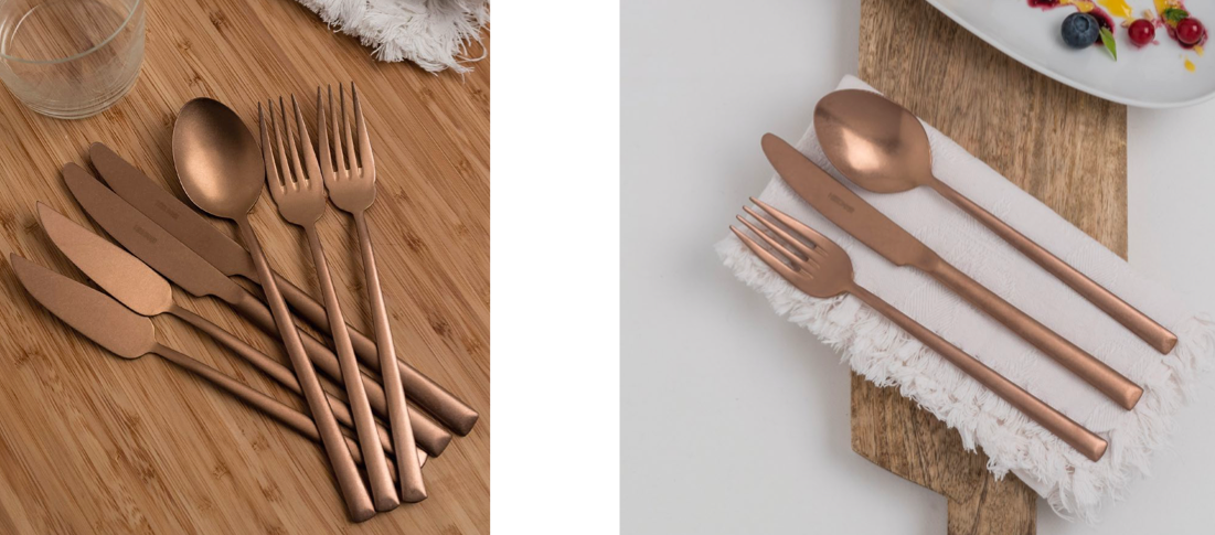 Столовые приборы, сталь 18/10, цвет медный, 24 шт. (6 ложек + 6 вилок + 6 ножей + 6 чайных ложек) подарочная коробка пластик