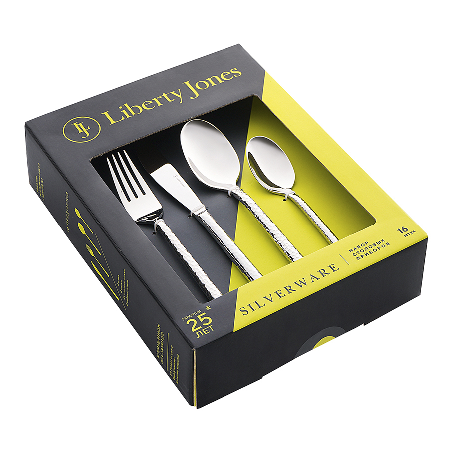 Столовые приборы Silverware от дизайнерского бренда Liberty Jones – стильный акцент, который добавит изысканности вашей столовой и сделает каждый прием пищи поистине незабываемым. Набор состоит из 16 предметов и включает все необходимое для обслуживания 4-х человек.