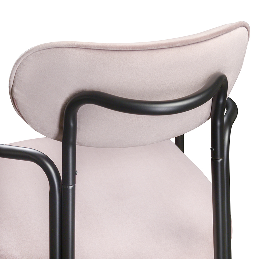 Стальное основание с порошковым покрытием делает конструкции прочными и надежными, а мягкий велюр с бархатистой текстурой обеспечивает тактильный комфорт. Ткань обивки обладает высокими показателями износостойкости. Используемый пенополиуретан отличается комфортной плотностью и жесткостью.
