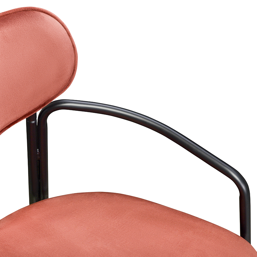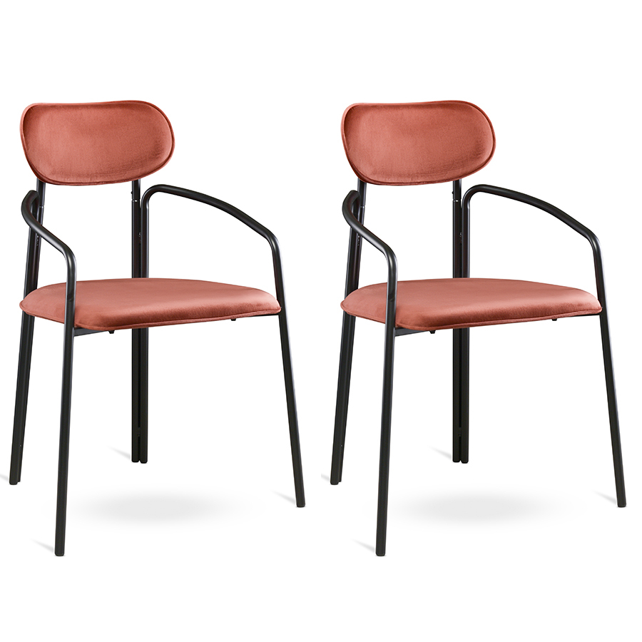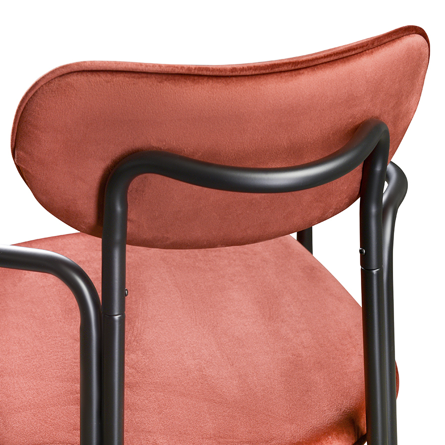 Стальное основание с порошковым покрытием делает конструкции прочными и надежными, а мягкий велюр с бархатистой текстурой обеспечивает тактильный комфорт. Ткань обивки обладает высокими показателями износостойкости. Используемый пенополиуретан отличается комфортной плотностью и жесткостью.