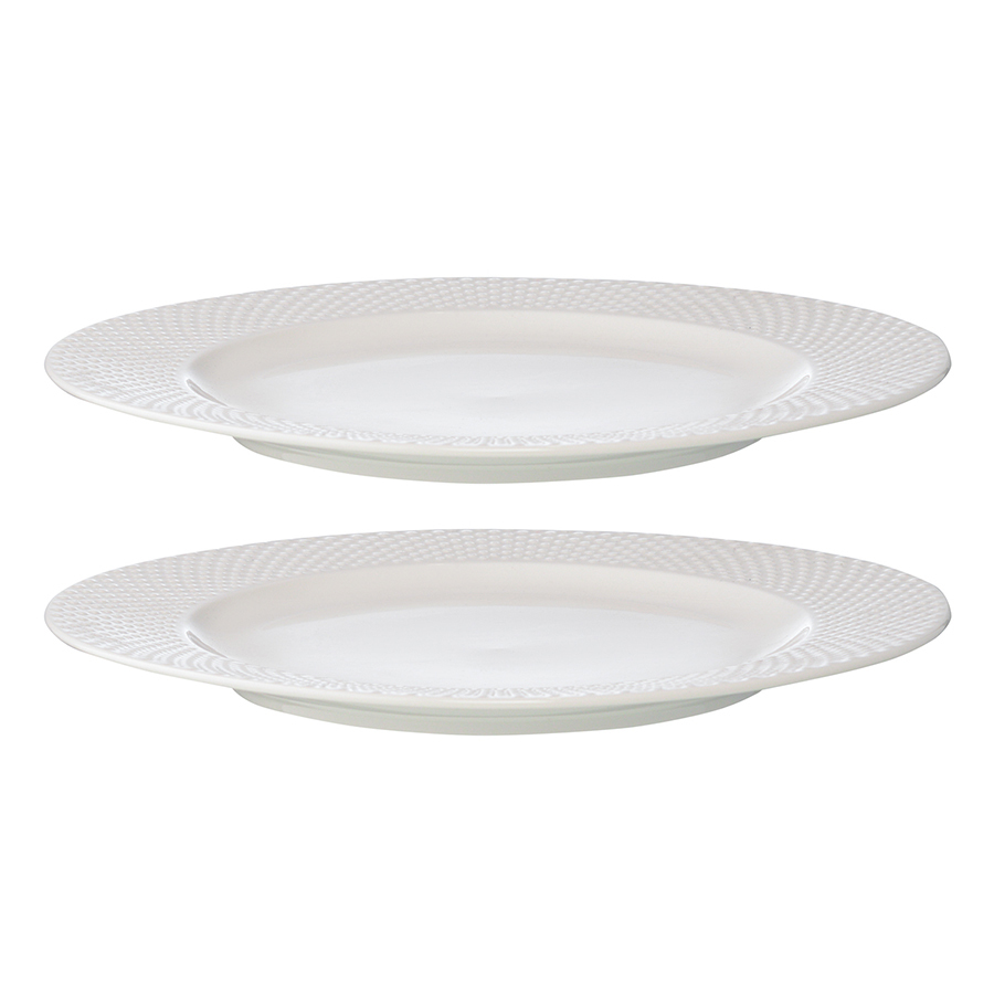 Набор из двух тарелок белого цвета с фактурным рисунком из коллекции Essential непременно понравится поклонникам классического и английского стилей. Равномерный фактурный декор в сочетании с глянцевой глазурью украсят сервировку и подчеркнут красоту любого блюда. Тарелки выполнены из фарфора – экологичного и практичного материала, простого в уходе, устойчивого к сколам и перепадам температуры.