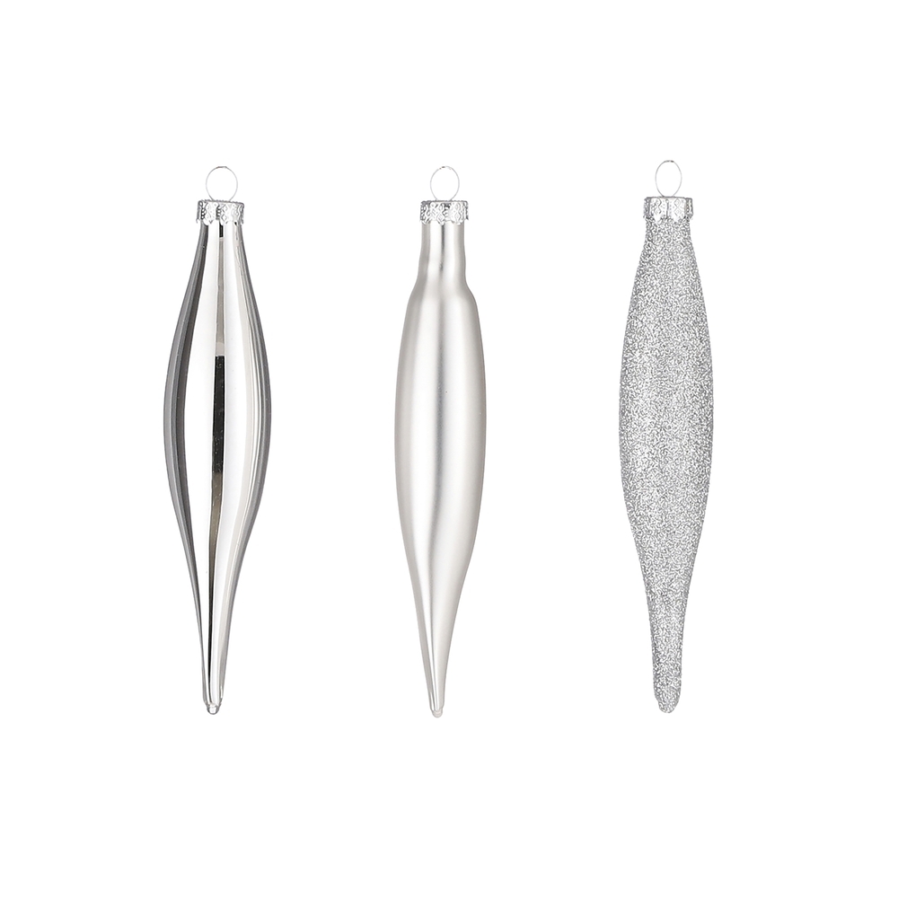 Набор стеклянных украшений сосулька 6 шт серебро 15 см в прозрачной упаковке.