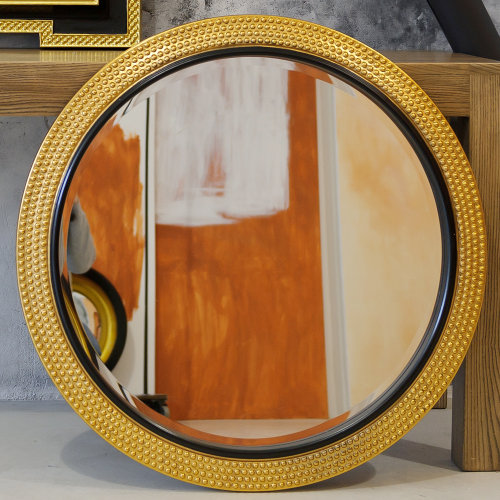 Не каждый интерьерный аксессуар способен объединить в своем дизайне аристократичность и гламур. Зеркало Астор располагает опрятной симметричной формой, удобной интерьерному балансу. Есть тут и пара метких дизайнерских приемов, рекомендующих это зеркало интерьерной элите. Во-первых, классический черно-золотой контраст, свойственный салонным нравам Серебряного века. Во-вторых, контурная отделка окружности элегантной фацетной гранью и грядами золотистых бусин, осыпающих пространство искристым настроением. Размер зеркального полотна: Ø 70 см
