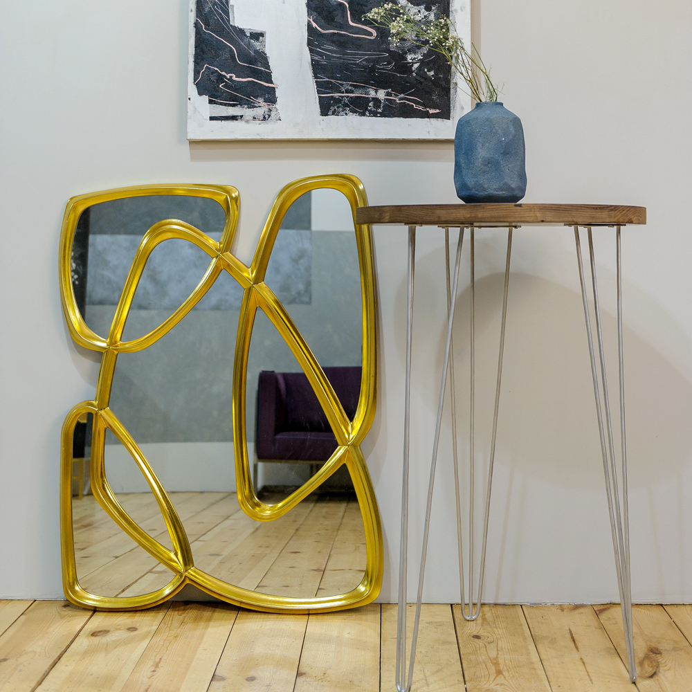 Зеркало Энигма – шедевр не только дизайнерской, но и конструкторской мысли. Зеркальные полотна смонтированы в металлическую раму из четырех частей, пересеченных настолько хитроумно, что зеркало напоминает работу авангардного художника. Для удобства подвески крепления заранее соединены тонким, но прочным металлическим тросом, обеспечивающим легкую центровку.