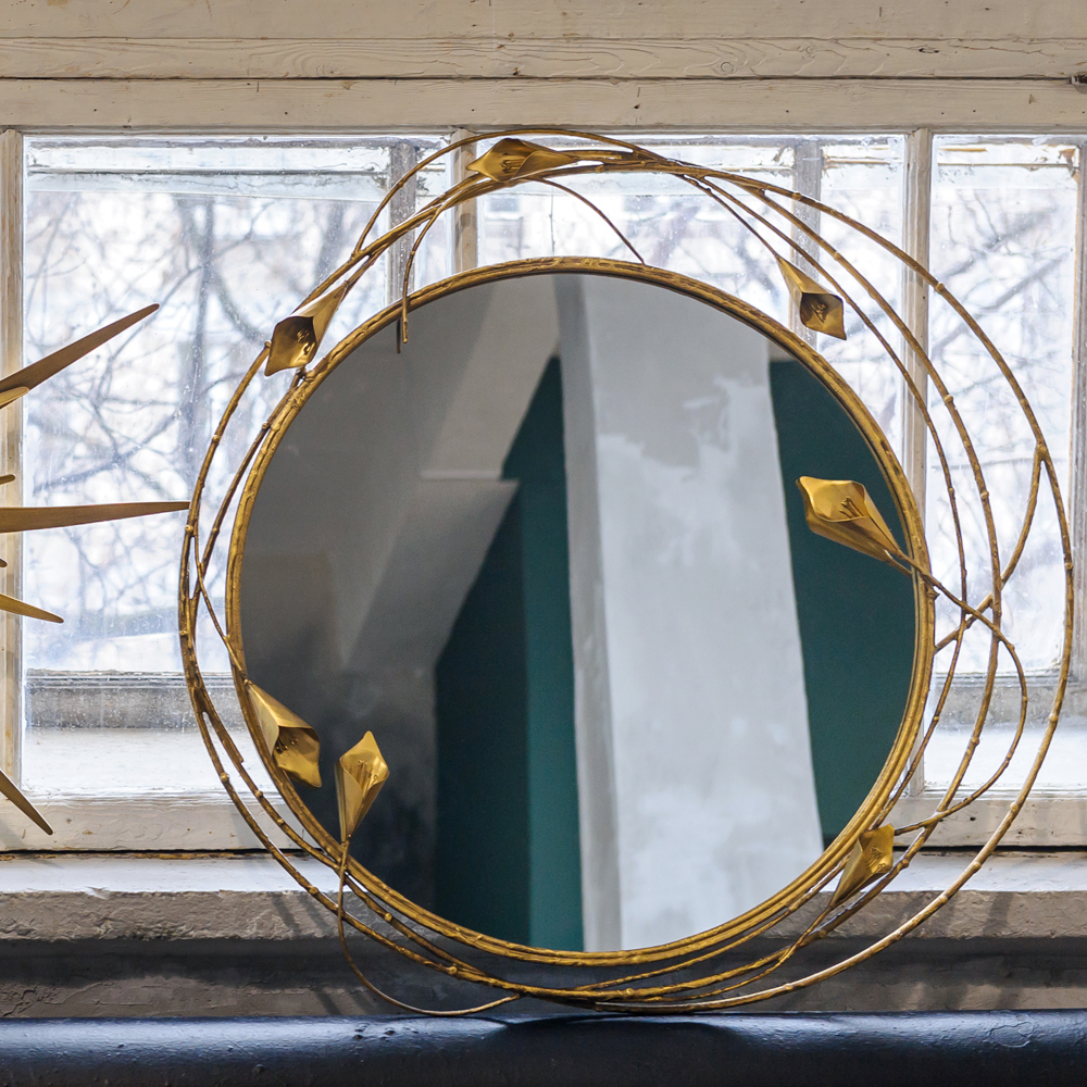 Балансируя между декором и практичностью, благородством и роскошью, классицизмом и лофтом, зеркало Эвита претендует угодить самым разнообразным эстетическим вкусам. Метровый диаметр адресует это зеркало гостиной комнате и спальне, холлу и прихожей, городским квартирам и загородным домам. Романтический шарм задают изящные металлические свитки, имитирующие цветочные бутоны и придающие зеркальной раме архитектурный объем. Размер зеркального полотна: Ø 75 см