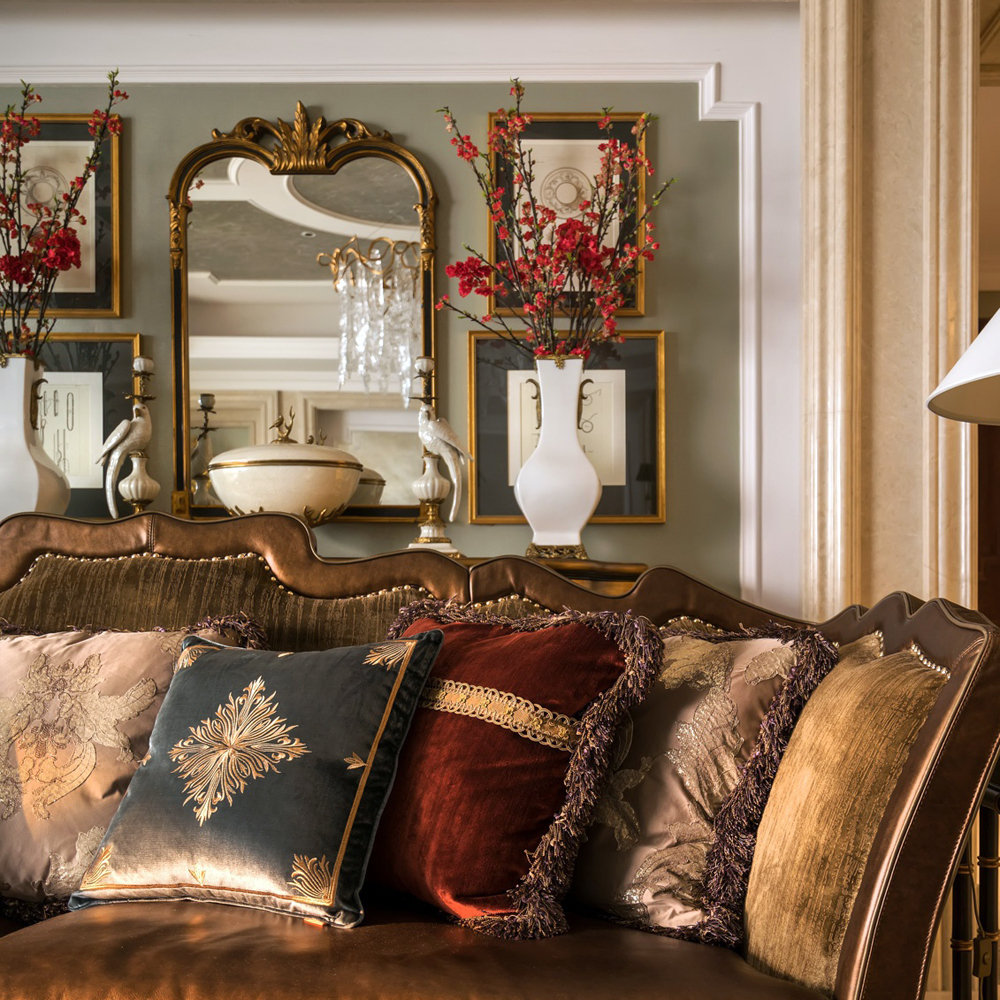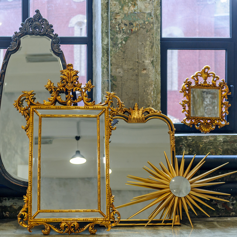 Зеркало Флавия завоевывает внимание аристократичным контрастом золота на черном, - цветовым сочетанием, покорившим интерьерную элиту со времен Серебряного века. Золоченый контур идеален для коронованной оправы зеркала, отразившего плавное изящество эпохи ар-нуво, связавшей дворцовый классицизм с современным авангардом. Для удобства подвески крепления заранее соединены тонким металлическим тросом, обеспечивающим легкую центровку.
