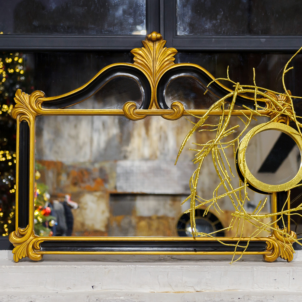Зеркало Франческо привлекает внимание не только рафинированным узором и представительским размером, но и безупречным контрастом золотого и черного цветов, - сочетанием, со времен Серебряного века признанным интерьерной классикой. Эти цвета бесспорно сочетаются с любыми окружающими палитрами. Эклектичный дизайн угождает классическим интерьерам рококо и ампира, модерн-классике ар-нуво и ар-деко, авангардному лофту и постмодерну. Особый эффект принадлежит двум фигурным зеркальным полотнам, украсившим узорчатый картуш.