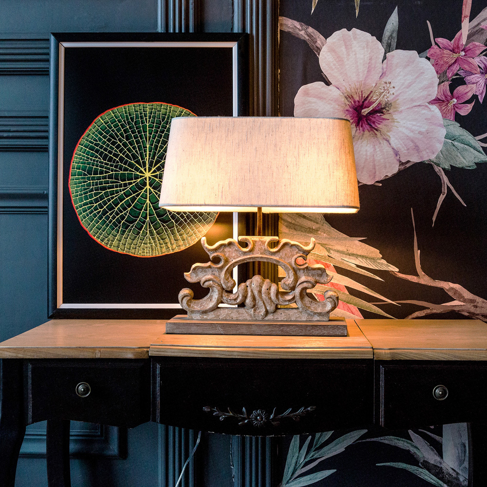 Точеные формы основания настольной лампы Ланже производят неизгладимое впечатление на окружение своим орнаментом, вырезанным из натурального дерева. Резной декор искусно состарен, на него вручную нанесена патина, что придает светильнику особый флер давно минувших дней. Светильник Ланже, который декорирован эффектным картушем— для тех, кто ценит декоративные возможности резного декора и хотят реализовать их в интерьере с ноткой роскоши. Тип цоколя: Е27. Количество ламп: 1 (в комплект не входит).