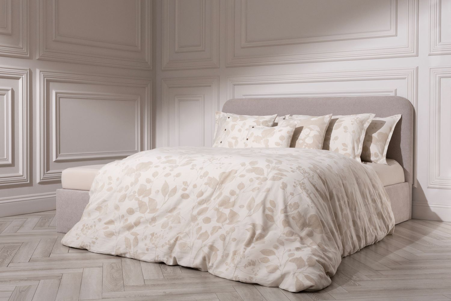 Natural Palette Grass – это постельное белье из мерцающего жаккарда природных оттенков с завораживающим рисунком из листьев и цветов
