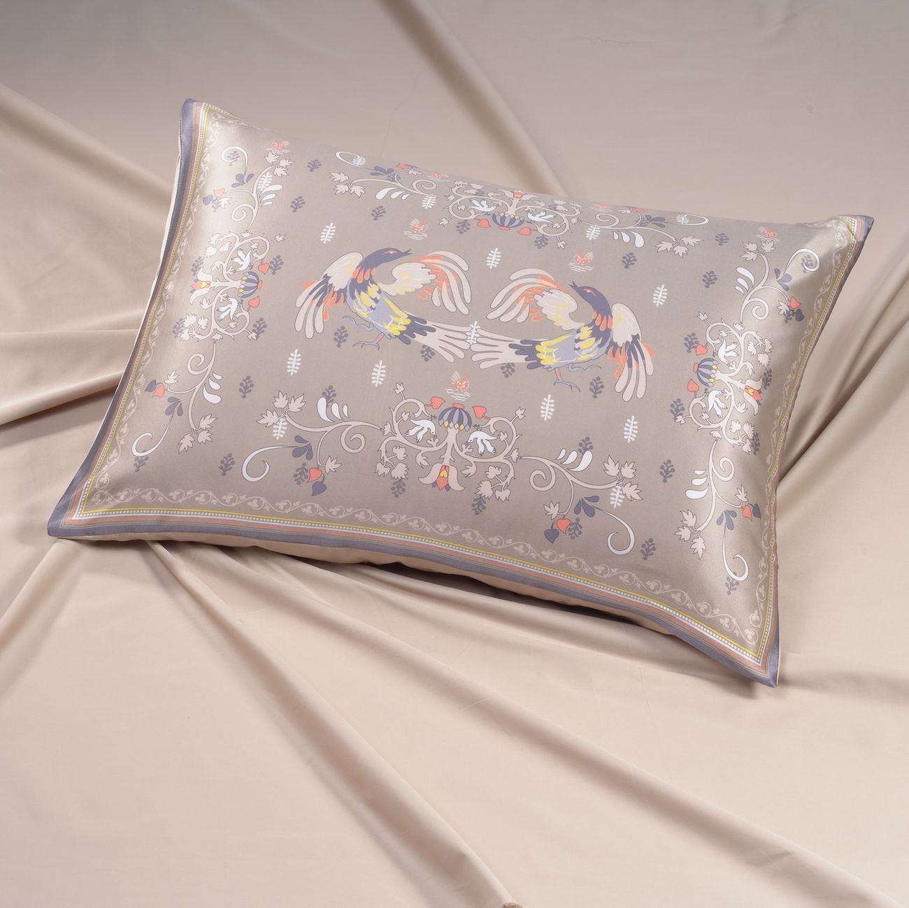 Наволочка из премиальных сортов шелка и сатина - идеальное сочетание удобства и визуальной эстетики. Орнамент ткани, создан на основе народной живописи русского севера - Мезенской росписи.