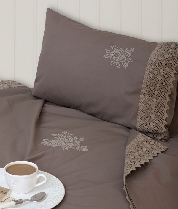 Наволочка из коллекции постельного белья Роуз. Наволочка цвета молочного шоколада с изысканной вышивкой и отделкой вязанным кружевом. Изготовлена из перкали. Такая наволочка дополнит постельное белье.