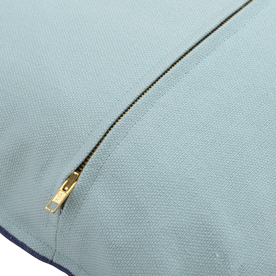 Чехол на подушку из фактурного хлопка голубого цвета с контрастным синим кантом из коллекции Essential освежит интерьер спальни или гостиной. Подушка в однотонном чехл C лаконичной отделкой органично впишется в любой стиль, можно дополнить покрывалом из этой же коллекции. Модель из плотного гипоаллергенного хлопка застегивается на потайную молнию.