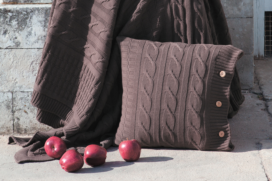Красивая вязаная наволочка для декоративной подушки будет стильно смотреться в вашем доме. Шоколадный цвет подойдет к любому интерьеру. Декоративные подушки придают дому уют и домашнее тепло. Вязка аккуратная с узорами в виде жгутов. Наволочка застегивается на пуговички и не будет сползать с подушки. Изготовлена из 100% хлопка. Станет отличным подарком близким людям.