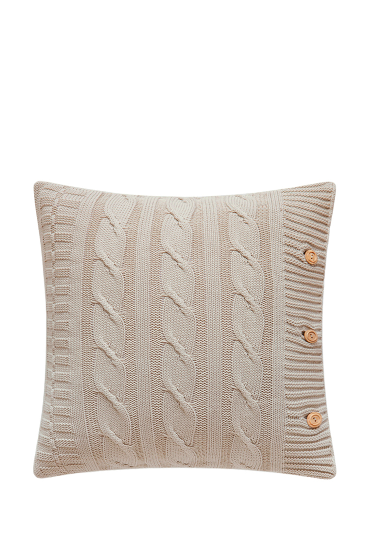 Красивая декоративная наволочка с вязанным узором. Изготовлена из хлопка. Проста в уходе.
