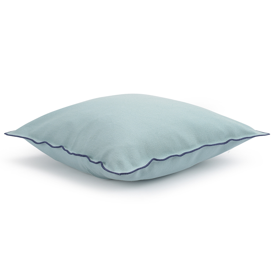 Чехол на подушку из фактурного хлопка голубого цвета с контрастным синим кантом из коллекции Essential освежит интерьер спальни или гостиной. Подушка в однотонном чехл C лаконичной отделкой органично впишется в любой стиль, можно дополнить покрывалом из этой же коллекции. Модель из плотного гипоаллергенного хлопка застегивается на потайную молнию.