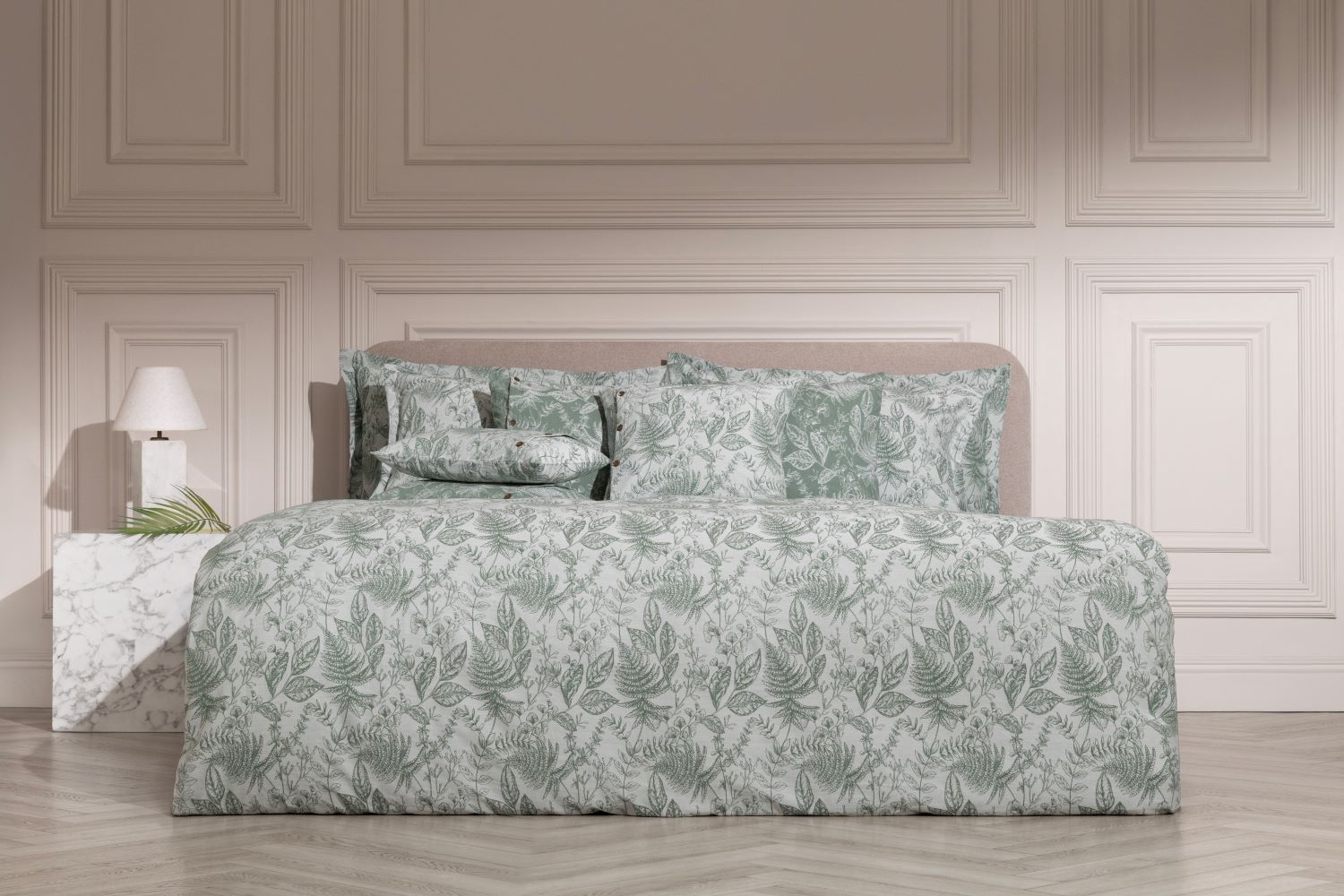 Natural Palette Grass – это постельное белье из мерцающего жаккарда природных оттенков с завораживающим рисунком из листьев и цветов
