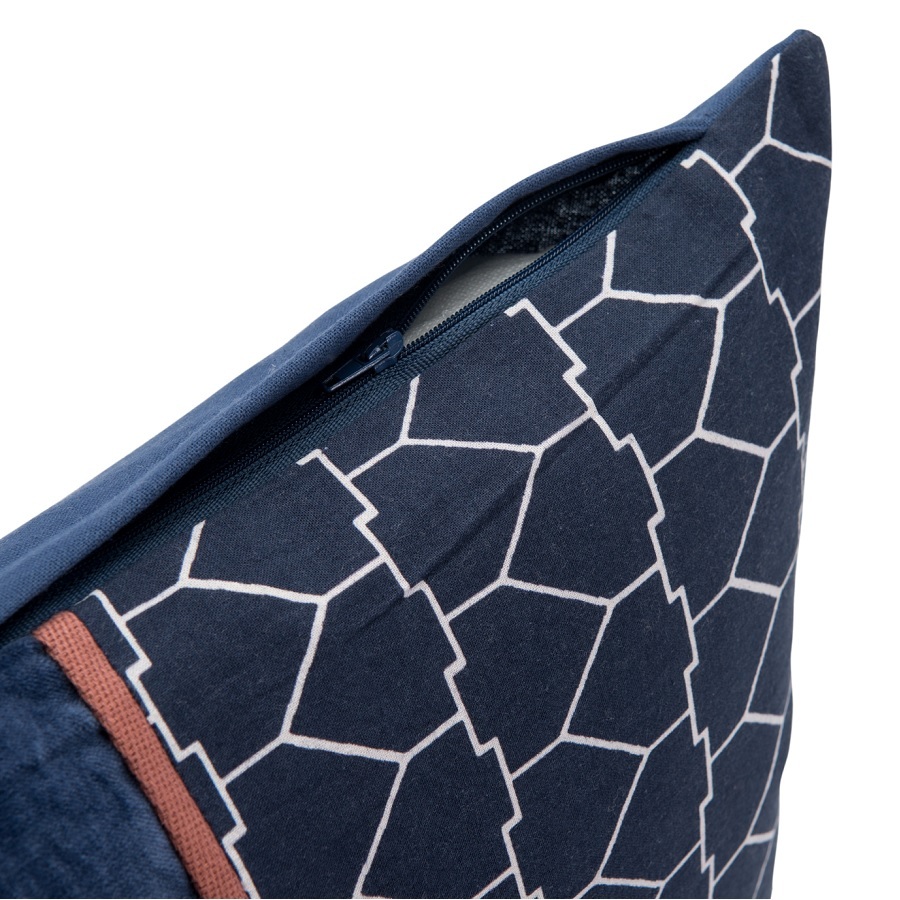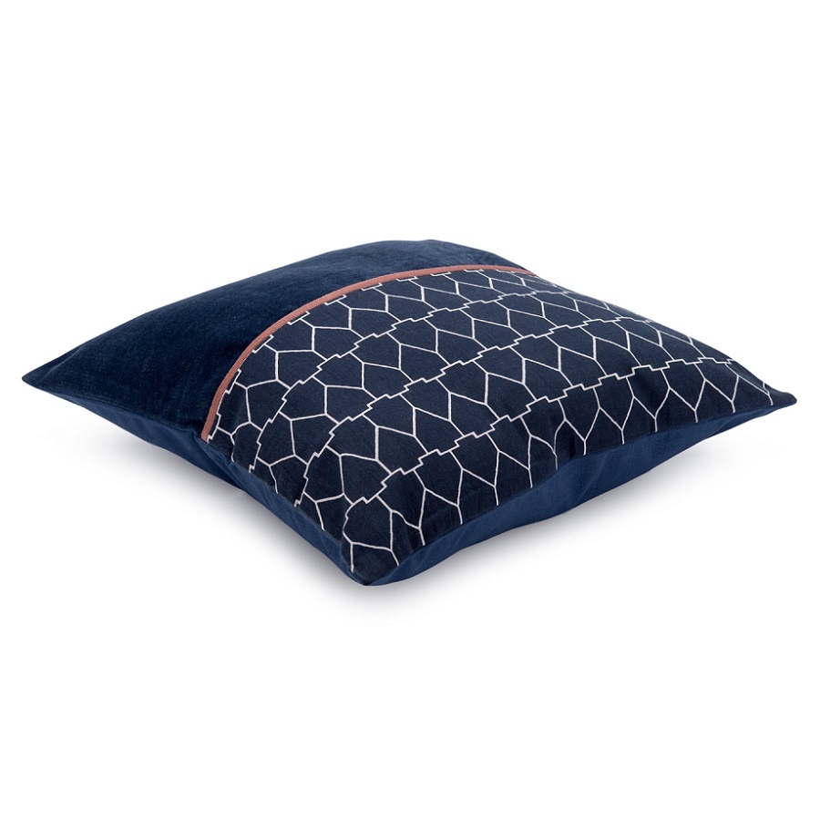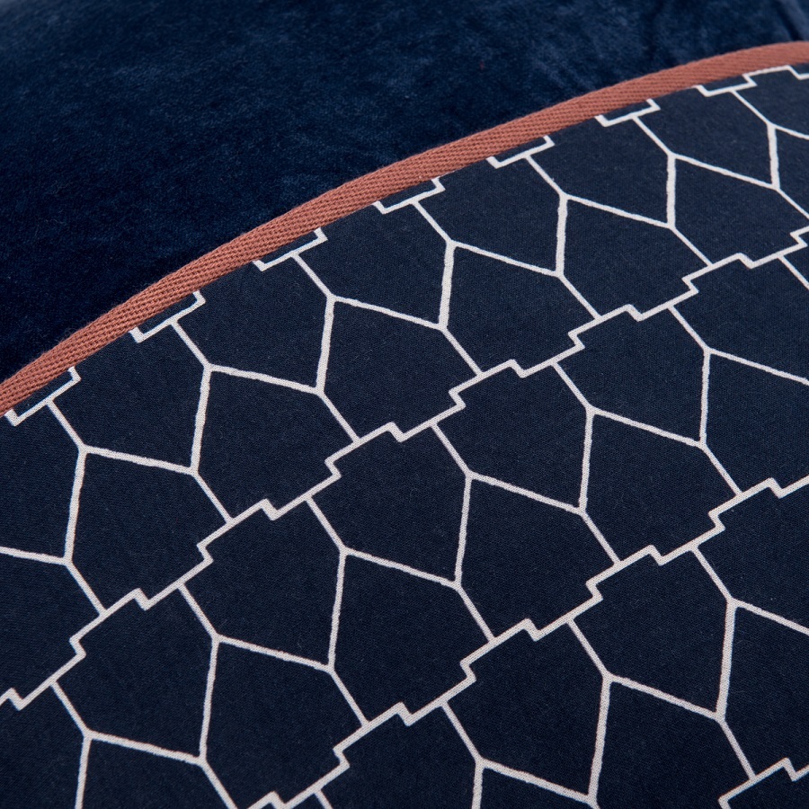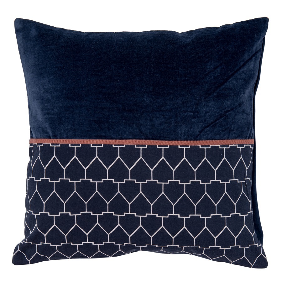 Чехол на подушку из хлопкового бархата с геометрическим принтом темно-синего цвета из коллекции Ethnic добавит уюта интерьеру гостиной и спальни. Лицевая сторона состоит из принтованной и однотонной частей, поэтому изделие легко сочетать с любым другим декоративным текстилем. Нежный, приятный на ощупь хлопковый бархат прост в уходе и не электризуется. Застёжка – потайная молния в боковом шве. Состав: 100% хлопок Размер 45х45см ! Стирка запрещена ! Гладить запрещено ! Барабанная сушка запрещена ! Не отбеливать ! Сухая чистка запрещена ! Допускается ручная чистка пятен