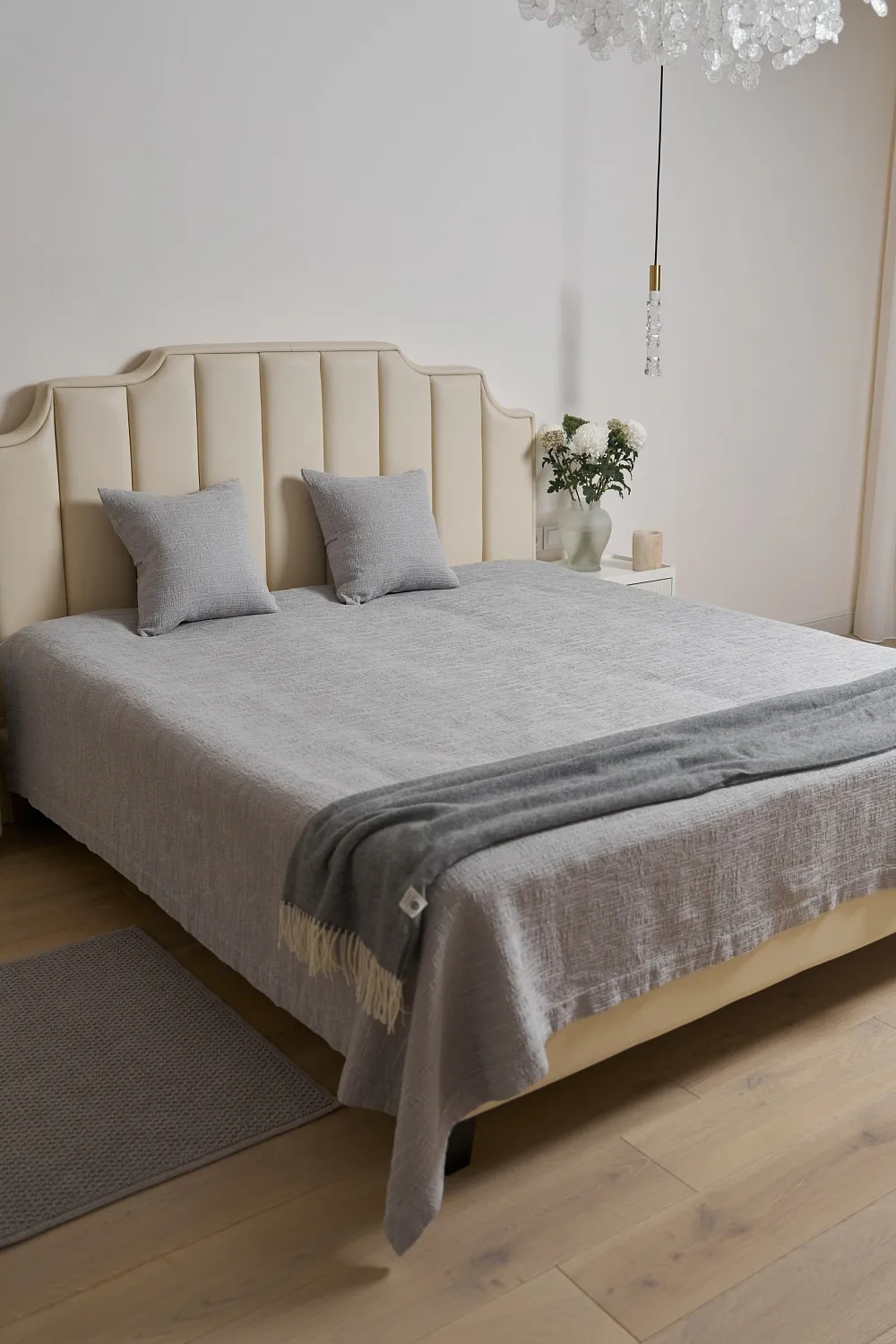 Изделие поможет обновить декоративные подушки и поддержать единую стилистику спальни. Цвет светло-серый легко сочетается с базовыми и природными оттенками интерьера, поэтому текстиль можно использовать как самостоятельный акцент или как часть готового комплекта.