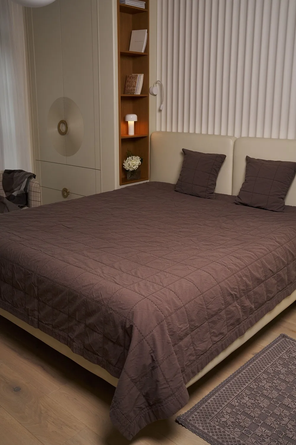 Изделие поможет обновить декоративные подушки и поддержать единую стилистику спальни. Цвет шоколадный легко сочетается с базовыми и природными оттенками интерьера, поэтому текстиль можно использовать как самостоятельный акцент или как часть готового комплекта.