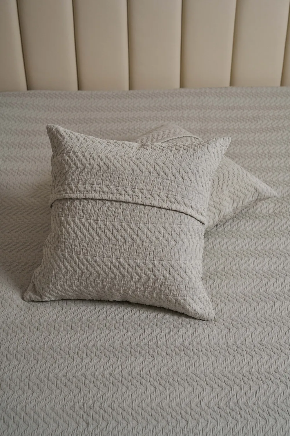 Изделие поможет обновить декоративные подушки и поддержать единую стилистику спальни. Цвет серо-фисташковый легко сочетается с базовыми и природными оттенками интерьера, поэтому текстиль можно использовать как самостоятельный акцент или как часть готового комплекта.