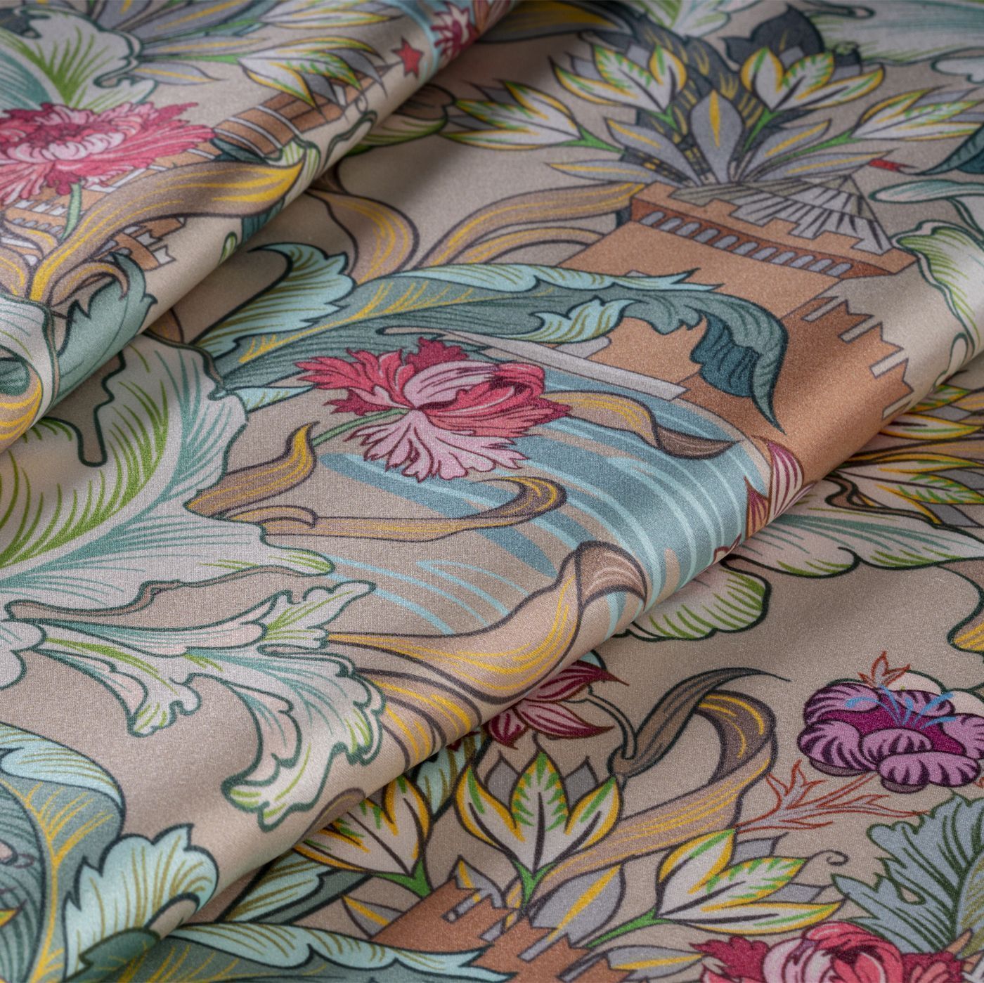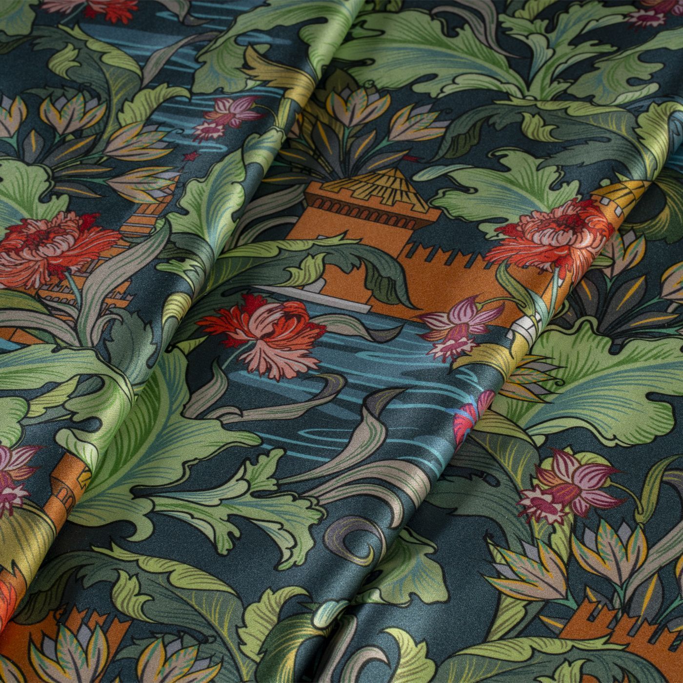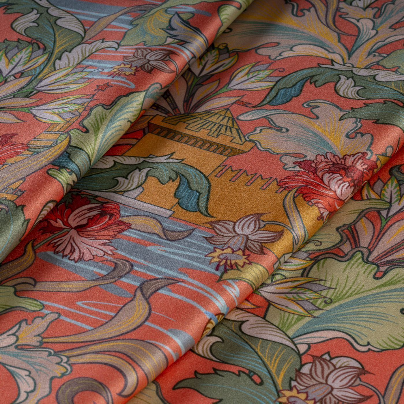 В материале этой модели ценят: шелк ценят за гладкую фактуру и деликатный блеск; материал приятно ощущается на коже; сатиновое переплетение придает ткани гладкость и аккуратный внешний вид.