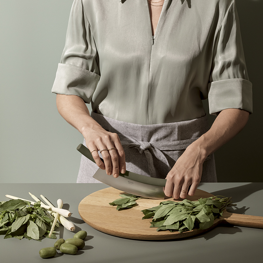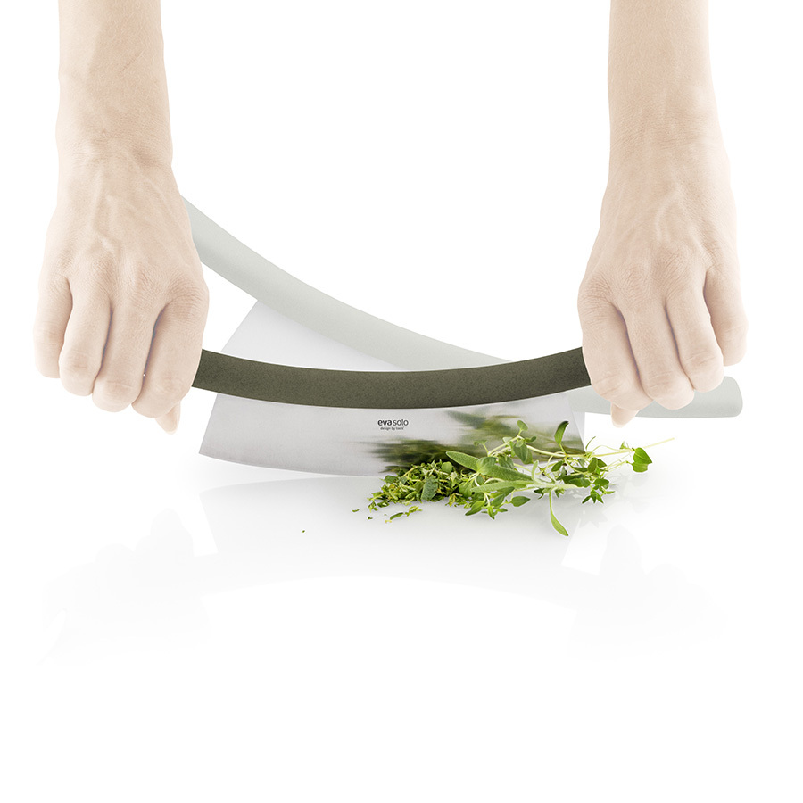 Функциональный нож в форме полумесяца позволяет быстро и с легкостью измельчить душистые травы и зелень.