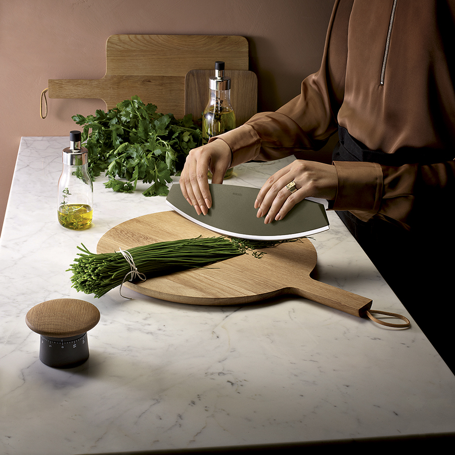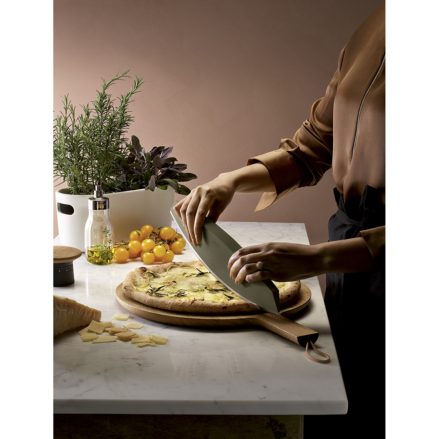 Нож отлично подходит для измельчения зелени или нарезания пиццы.
