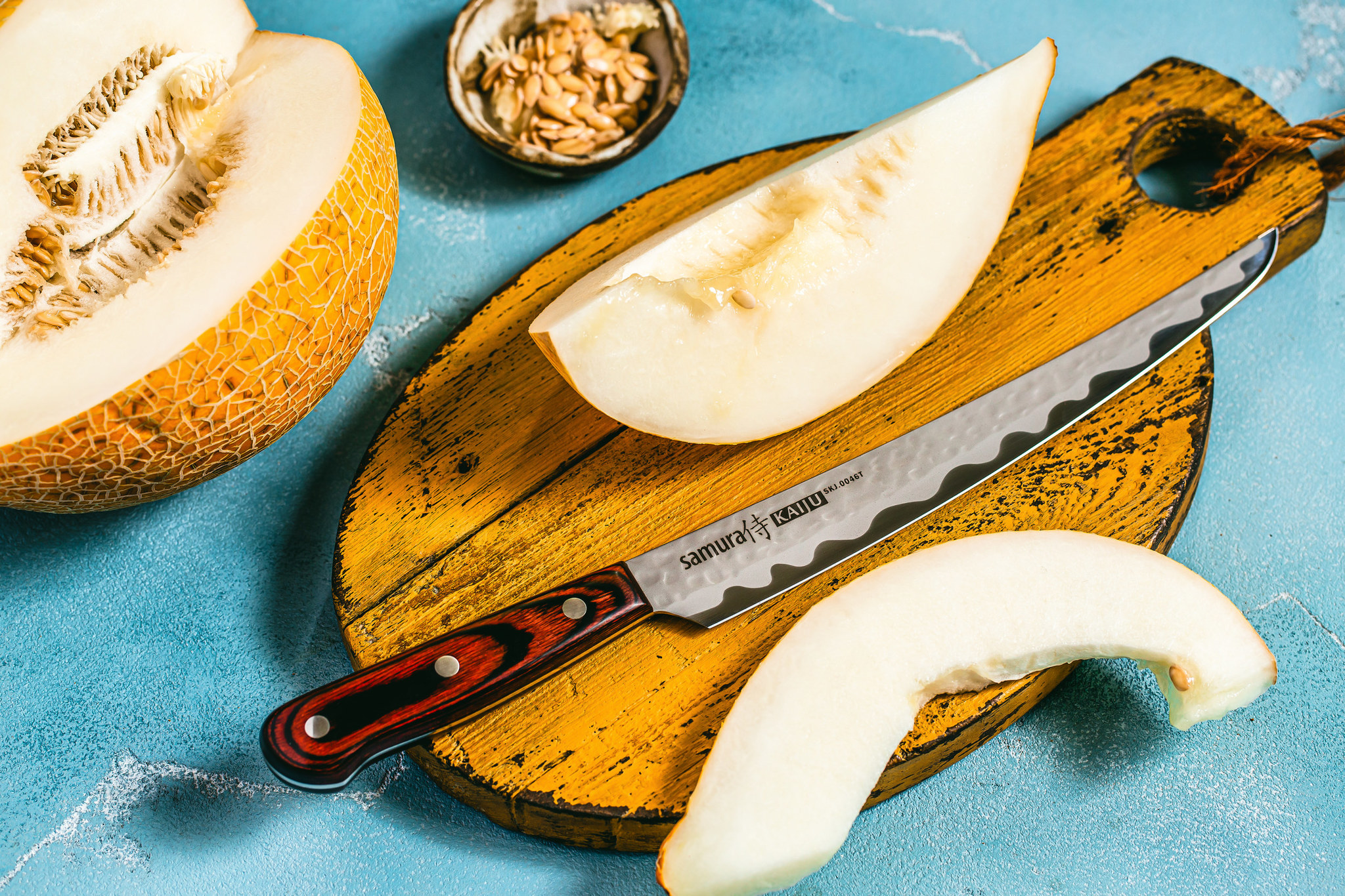 Ножи Samura делаются из лучших сортов японской и шведской стали, закалены до твердости 58 - 61 HRC, лезвия имеют японскую форму и тонкое сведение от обуха, что даёт тот самый fantastic cutting performance.