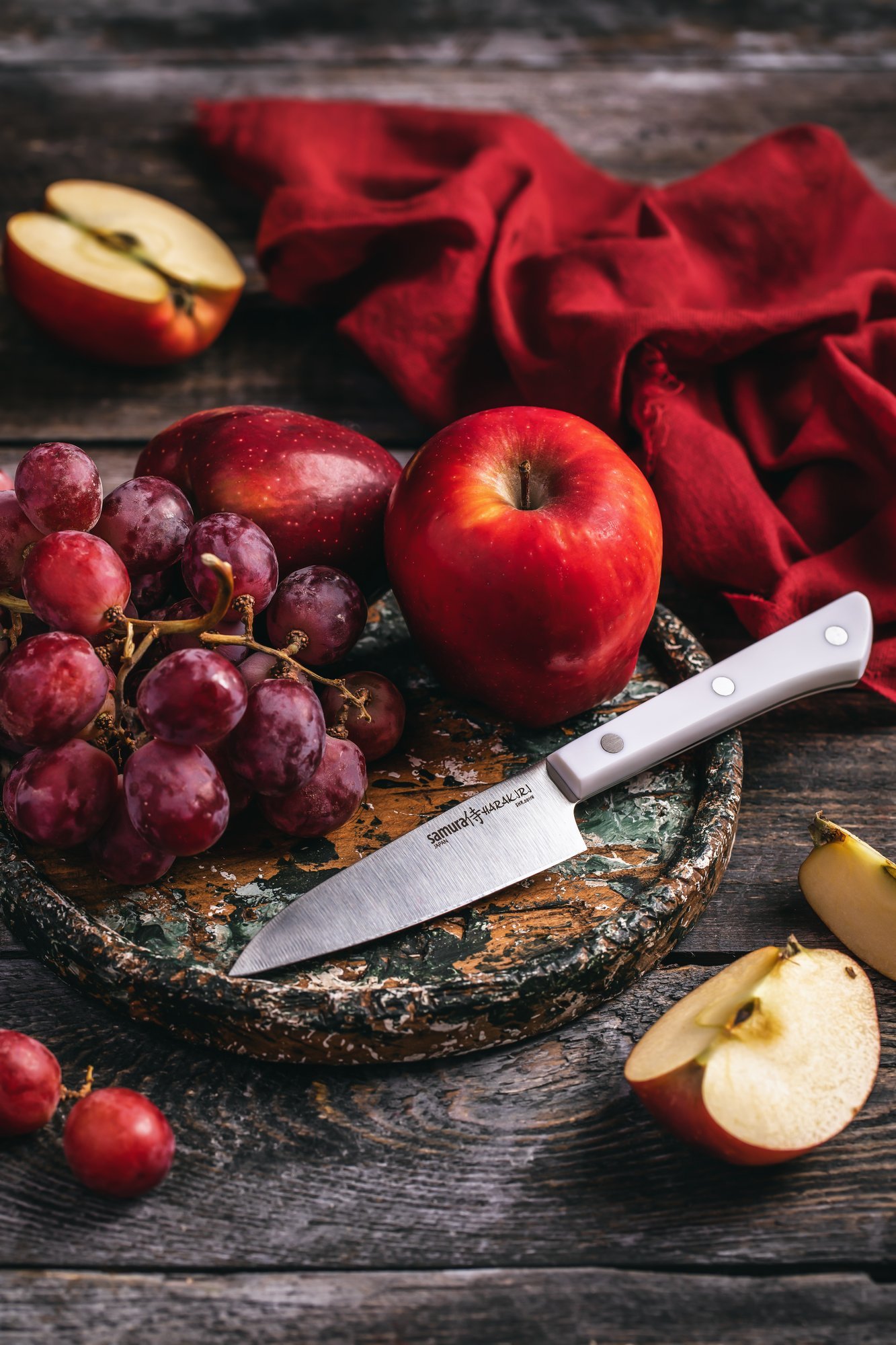 Ножи Samura делаются из лучших сортов японской и шведской стали, закалены до твердости 58 - 61 HRC, лезвия имеют японскую форму и тонкое сведение от обуха, что даёт тот самый fantastic cutting performance.