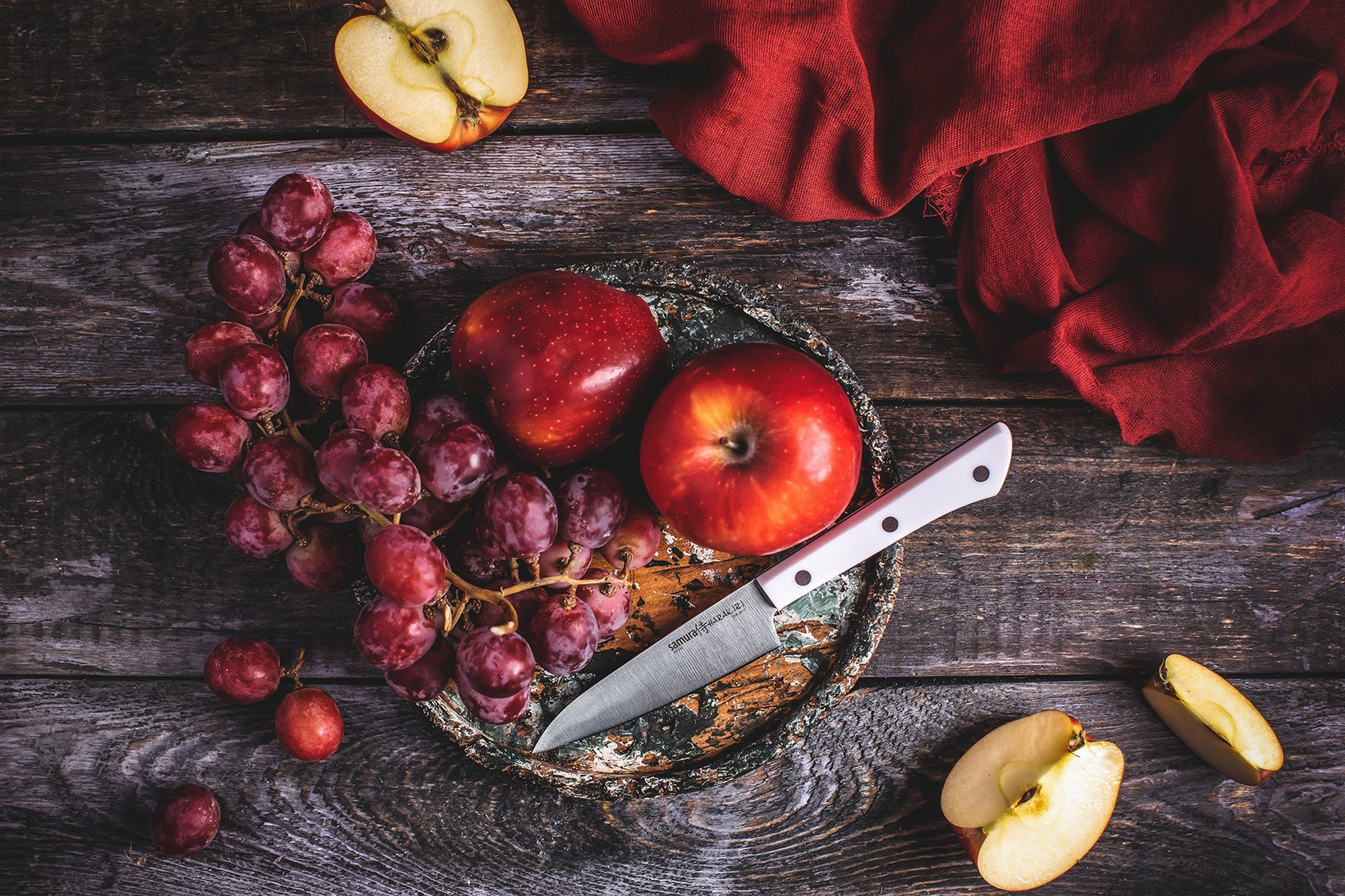 Конструкционной особенностью кухонного ножа для чистки овощей и фруктов считается короткий клинок. Именно это обстоятельство плюс идеальный баланс клинка с рукоятью и чрезвычайно малый вес позволяют легко орудовать ножом Samura Harakiri даже долгое время, быстро справляясь с любыми объемами работ.