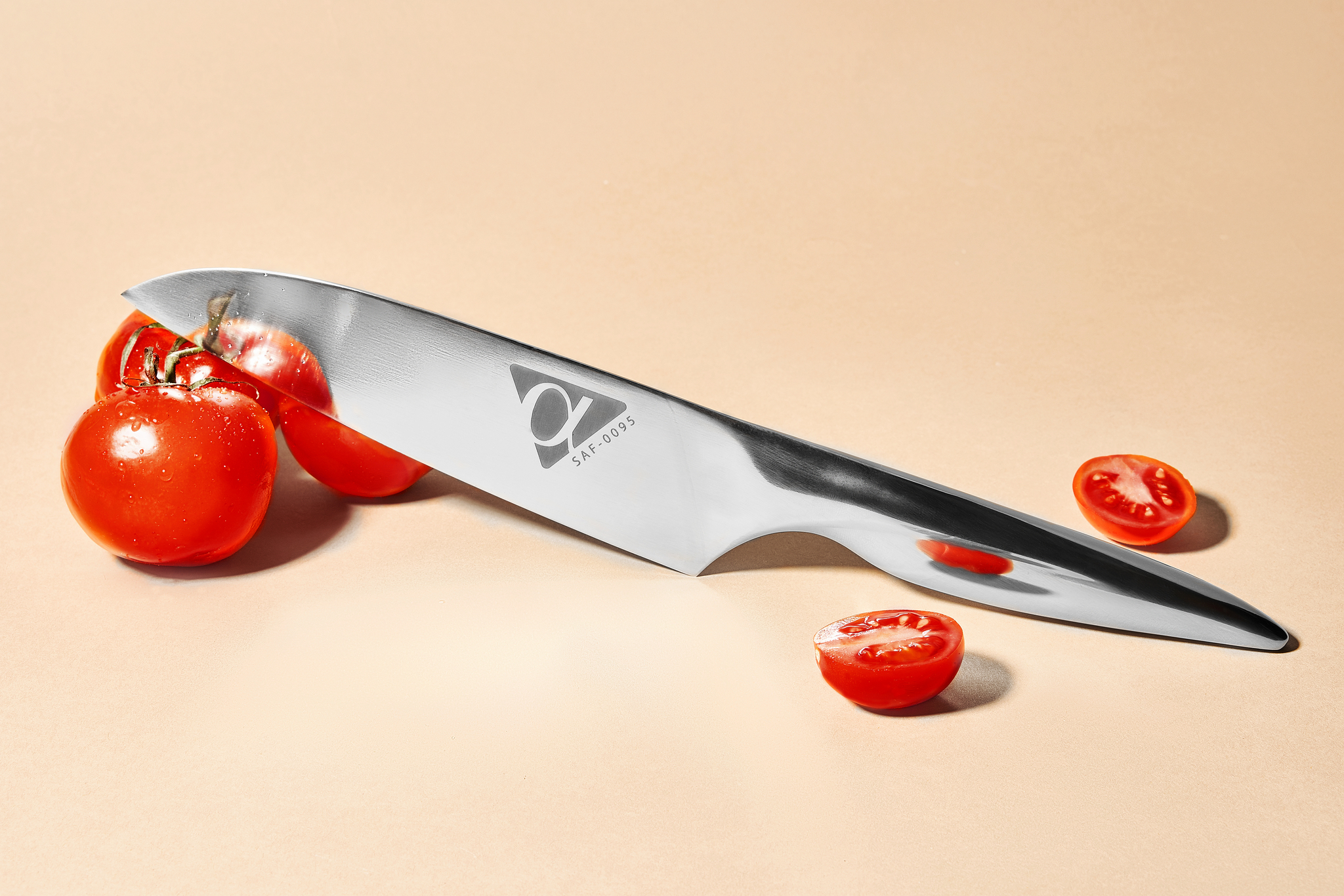 ALFA сантоку — нож-эталон эргономичности и эстетики. Тонкий и элегантный внешне, благодаря своему кончику лезвия, опущенному вниз, экономит ваши силы при нарезке мяса, рыбы, овощей, гастрономии и т.д.