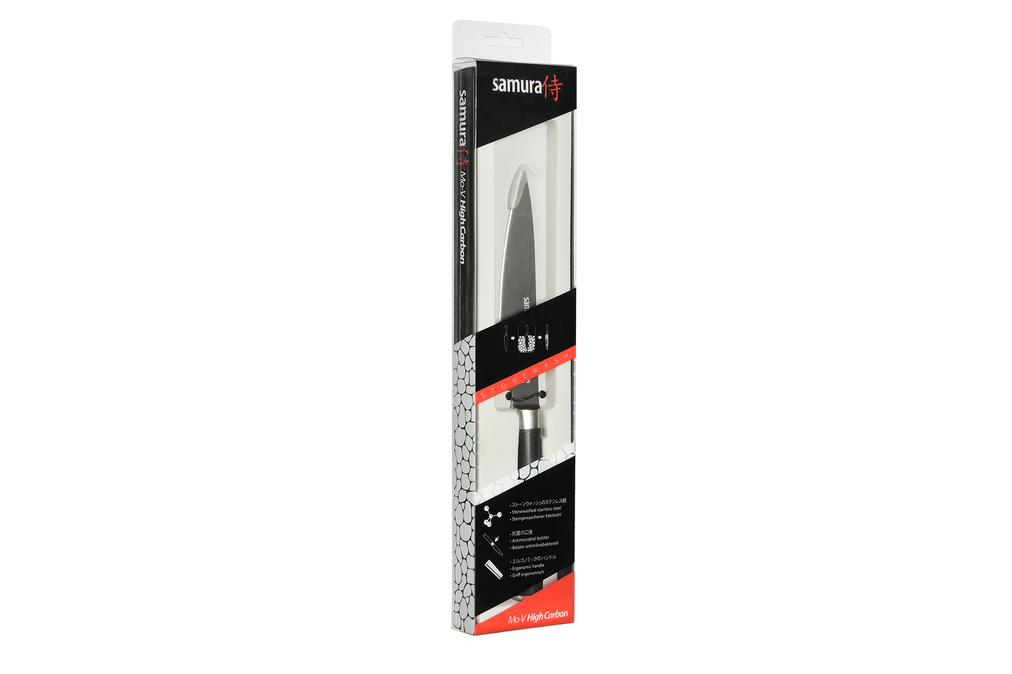 Универсальный нож 125 мм длиной может использоваться как на домашней, так и на профессиональной кухне. Небольшие овощи и фрукты без особо твёрдой кожуры и костей не устоят перед профессионализмом универсала Samura MO-V Stonewash!