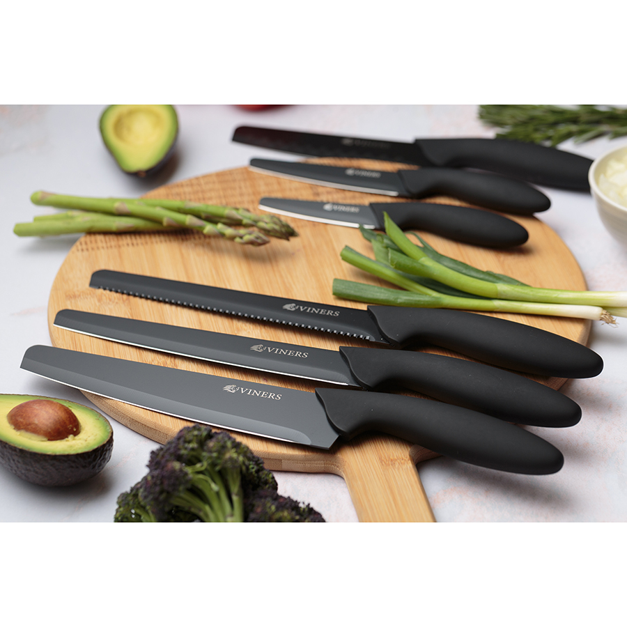 Нож сантоку Assure длиной 15 см станет незаменимым помощником на кухне. Он идеально подходит для нарезки овощей и разделки мяса. Компания Viners разработала инновационное лезвие, которое ставит безопасность на первое место. Особенность ножа – режущая часть с наконечником прямоугольной формы. Это гарантия защиты от несчастных случаев в доме или на открытом воздухе. Для изготовления лезвия используется прочная нержавеющая сталь. Поверхность клинка покрыта антипригарным слоем, который уменьшает трение при нарезке продуктов. Нож оснащен изогнутой мягкой ручкой для максимального комфорта при работе на кухне. Рекомендуется мыть вручную и вытирать насухо.