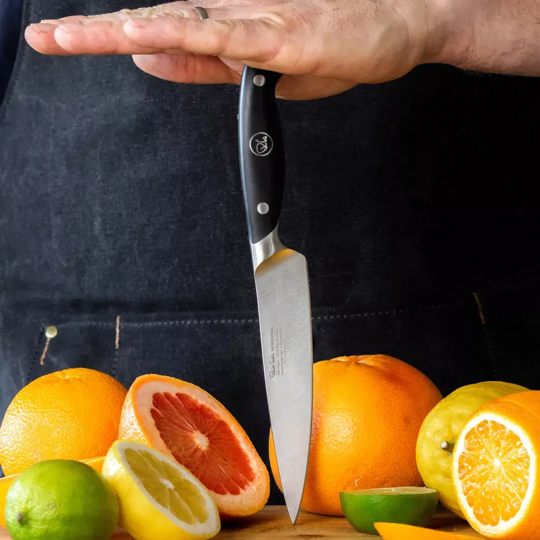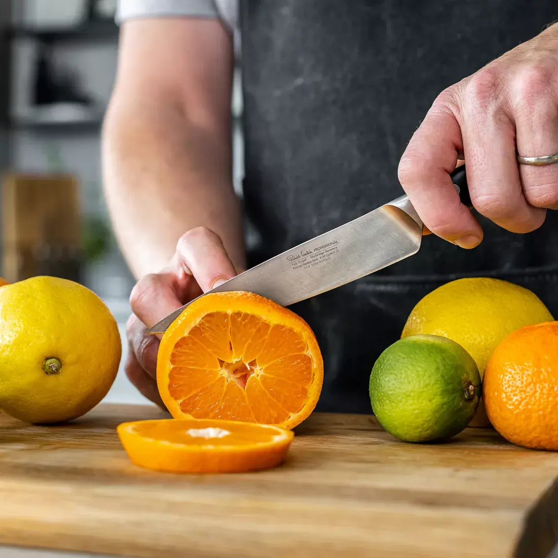 Силуэт каждого ножа был придуман в полном соответствии с его будущим предназначением, а режущие кромки ножниц по остроте ни в чем не уступают клинками профессиональных ножей. Залогом качественного использования рабочего инструмента повара, бесспорно, является материал, из которого он изготовлен. Для создания своих великолепных ножей дизайнеры Robert Welch использовали сырье премиум-класса. Клинки изделий этой группы изготавливаются из цельного куска немецкой стали DIN 1.4116. Этот высококачественный сплав обеспечивает лезвию прочность, твердость до 56 единиц по шкале Роквелла, а также бритвенную остроту режущей кромки.