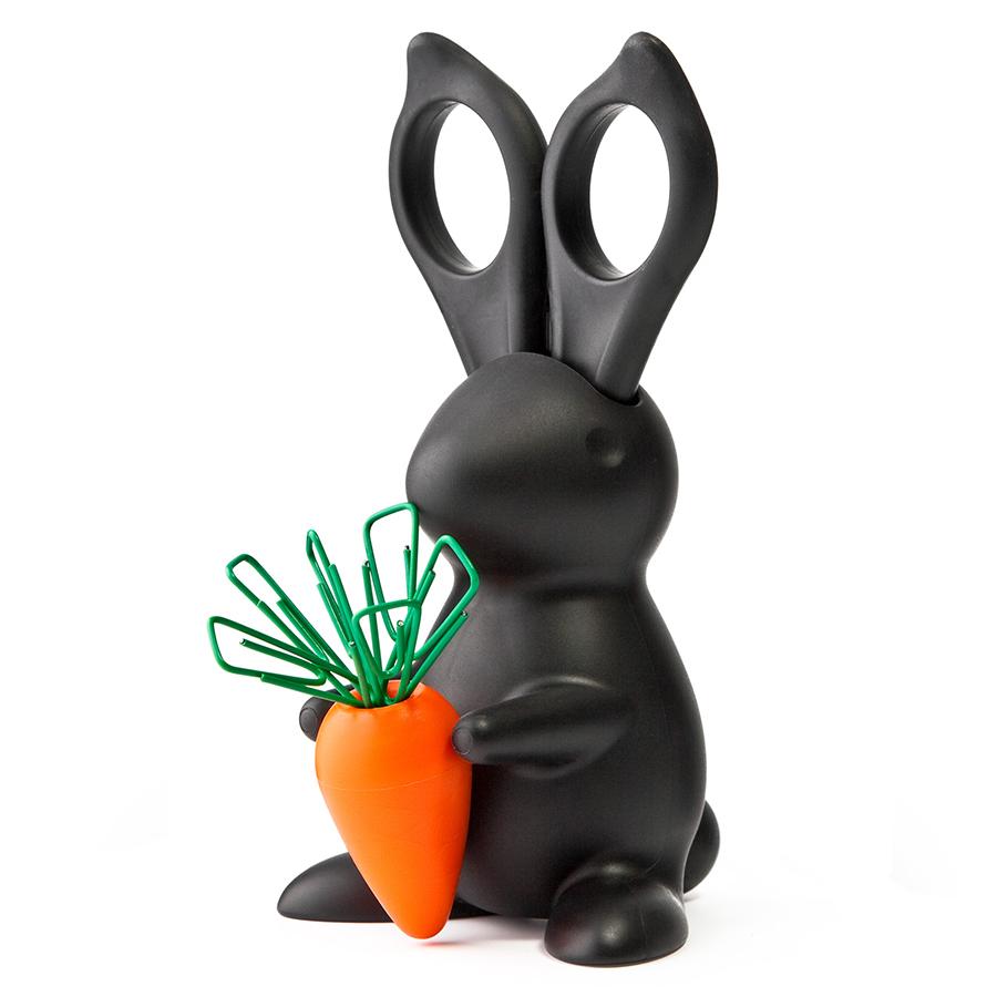 Ножницы+магнит со скрепками Qualy Bunny черный