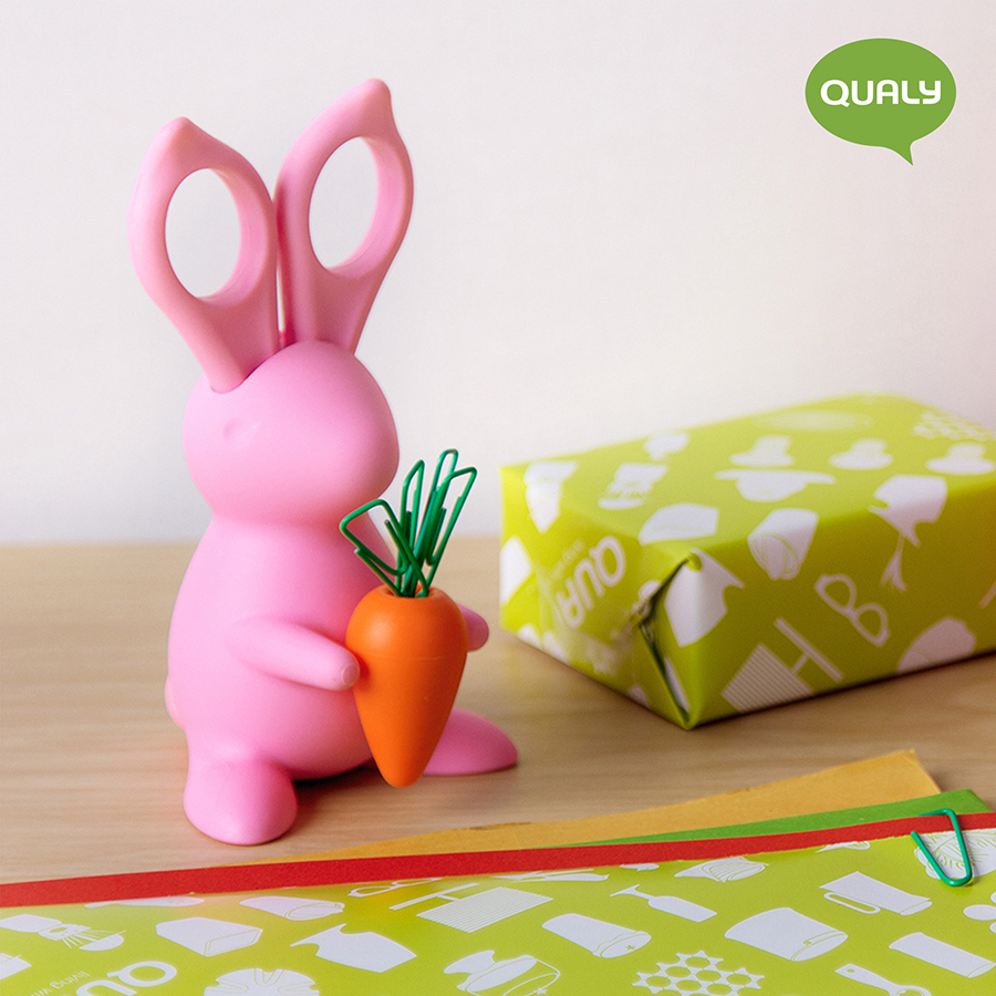 Ножницы+магнит со скрепками Qualy Bunny розовый