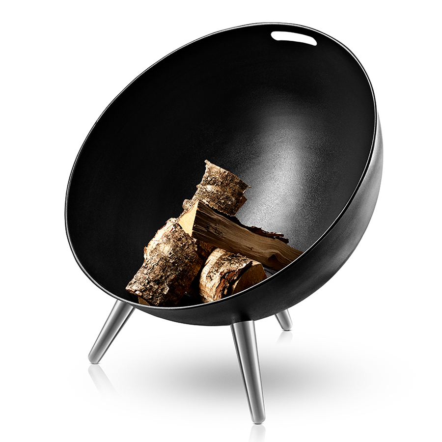 Очаг сделан из чёрной матированной стали и алюминиевых ножек. Диаметр 64 см.