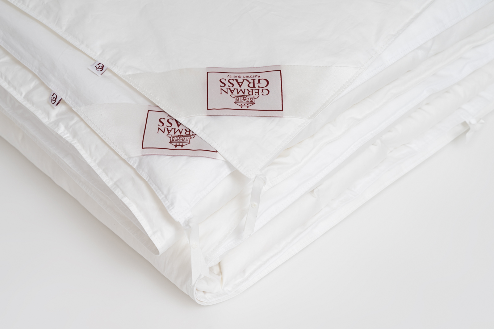 Альянс из одеял с наполнителями из отборного белого гусиного пуха и шелка высшего качества Mulberry. В одеяле ALLIANCE DOWN GRASS сочетается отборный белый гусиный пух из северных регионов и нежный пуходержащий макосатин из длинноволокнистого египетского хлопка (Macosateen, TC 460). Уникальная технология создания стеганых одеял BOX- QUILTING®, разработанная и запатентованная специалистами German Grass, позволила создать стеганые одеяла ALLIANCE DOWN GRASS, не уступающие по параметрам кассетным и продлевающим их срок службы. Всесезонное «Light» одеяло отлично подойдет для использования в теплое межсезонье. Рекомендована стирка при температуре до 30°С. Одеяло ALLIANCE SILK GRASS с наполнителем из шелка высшего качества Mulberry подарит настоящий сон класса «люкс». Нежное, легкое и пластичное изделие принимает форму тела и бережно укутывают спящего, создавая ощущения неги и превосходного комфорта. Благодаря особым свойствам наполнитель поддерживает оптимальную температуру, защищая от замерзания и перегрева. Более того, шелк, обладая по своей природе гипоаллергенными свойствами, в сочетании с пуходержащим сатином из длинноволокнистого египетского хлопка (Macosateen, TC 460) предотвращает возможность появления пылевого клеща, разведения грибков и бактерий. Всесезонное «light» одеяло отлично подходит для сна в теплое межсезонье. Изделие требует деликатного ухода, рекомендована только сухая чистка. При объединении изделий в альянс получается теплое одеяло, прекрасно согревающее в холодное время года.