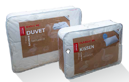 Наполнитель: 90% чистый новый, белый гусиный пух. 10% мелкое перо Класс 1 (европейская норма)