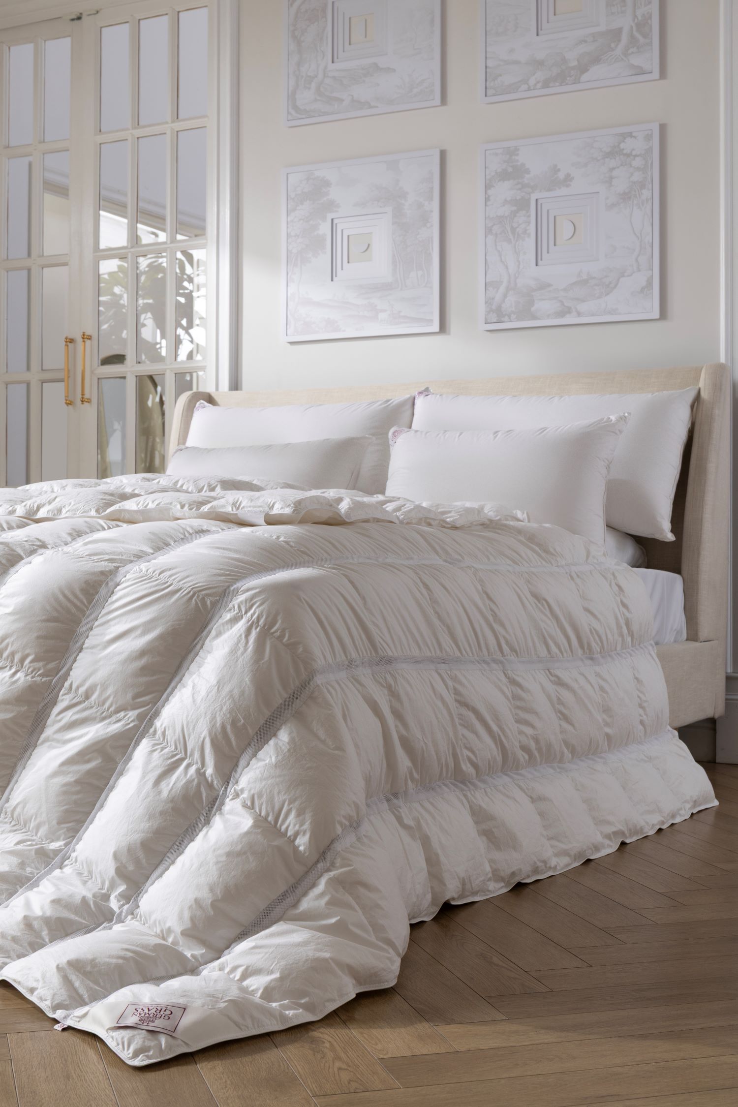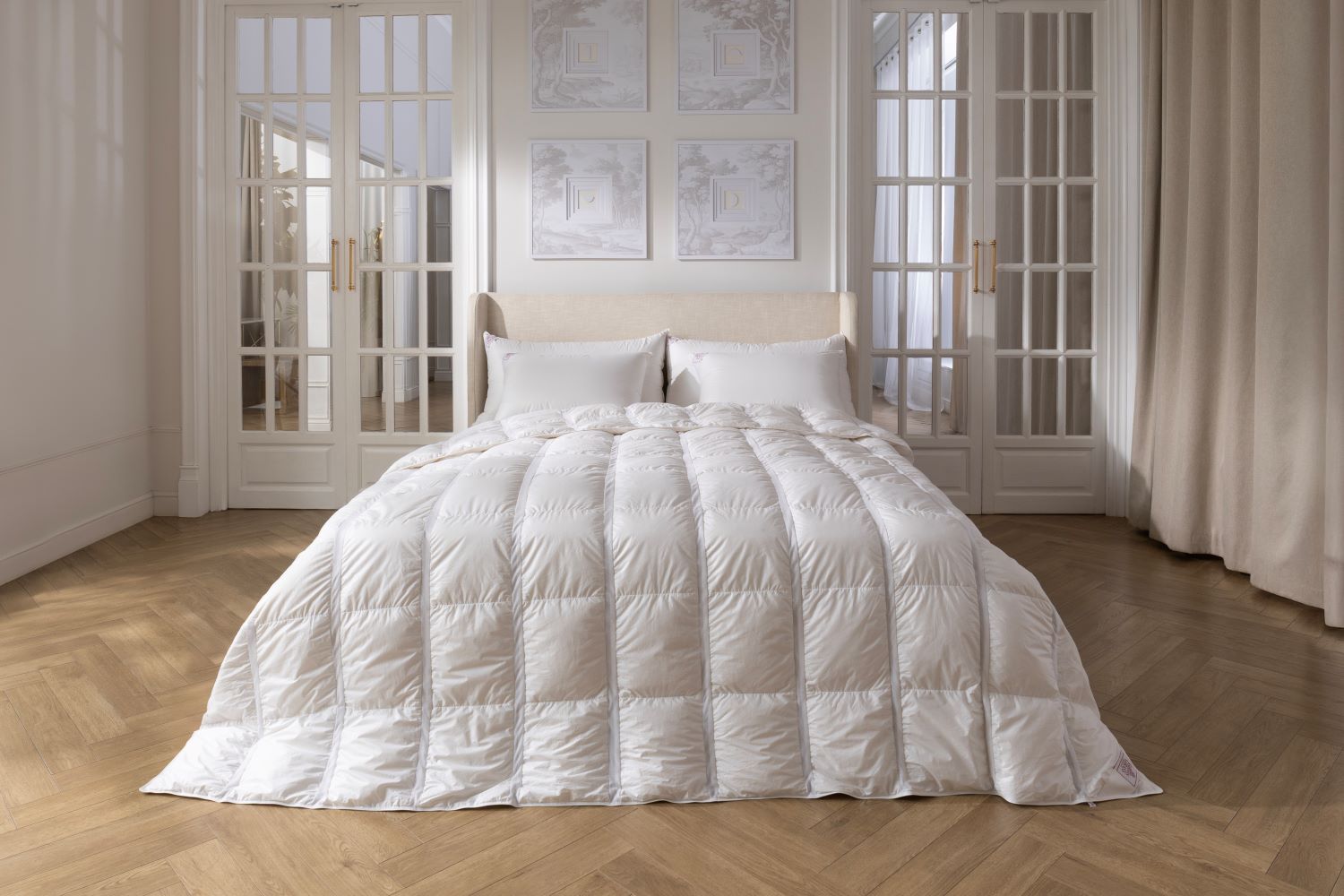Нежные, пышные и теплые кассетные одеяла из 100% гусиного пуха в мягчайшем хлопковом мако-батисте дополнили особыми перфорированными вставками для улучшенного воздухообмена и терморегуляции