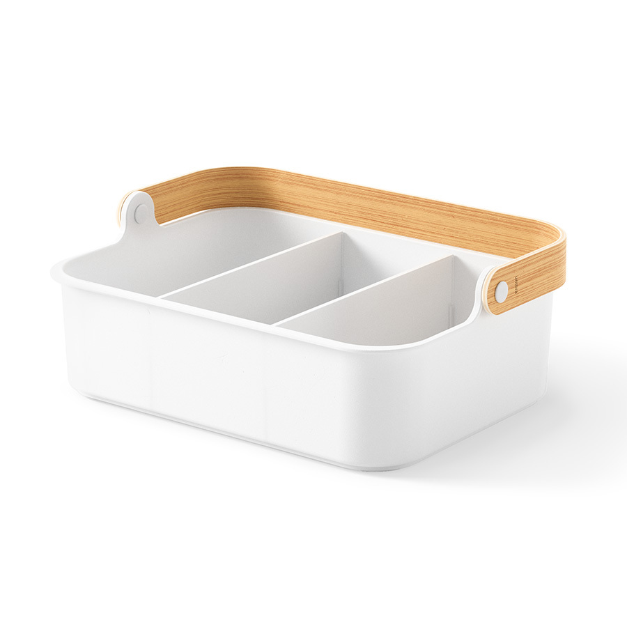 Органайзер Bellwood поможет организовать компактное хранение продуктов и вещей в любой из комнат. Специальные разделители позволяют удобно размещать и сортировать предметы. Органайзер на 80% выполнен из переработанного АБС-пластика, известного своей прочностью, устойчивостью к износу и долговечностью. Он оснащен ручкой из древесины, которая обеспечивает простую переноску, а также делает дизайн привлекательным и интересным.