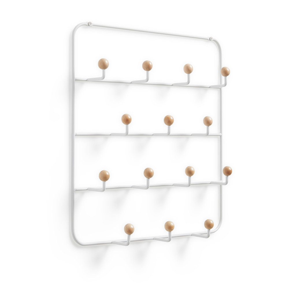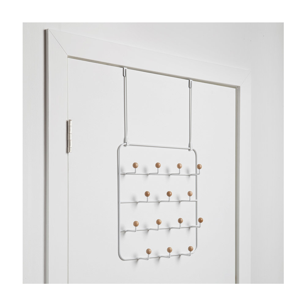 Мобильный металлический органайзер для аксессуаров с надверным креплением. При желании может крепиться к стене на шурупы и дюбели (,входят в комплект),. , ,14 крючков с деревянными шарообразными наконечниками, которые предотвратят растягивание ткани на одежде и не дадут соскользнуть сумкам и портфелям. Прекрасно сочетается с предметами из коллекции Promenade. , ,