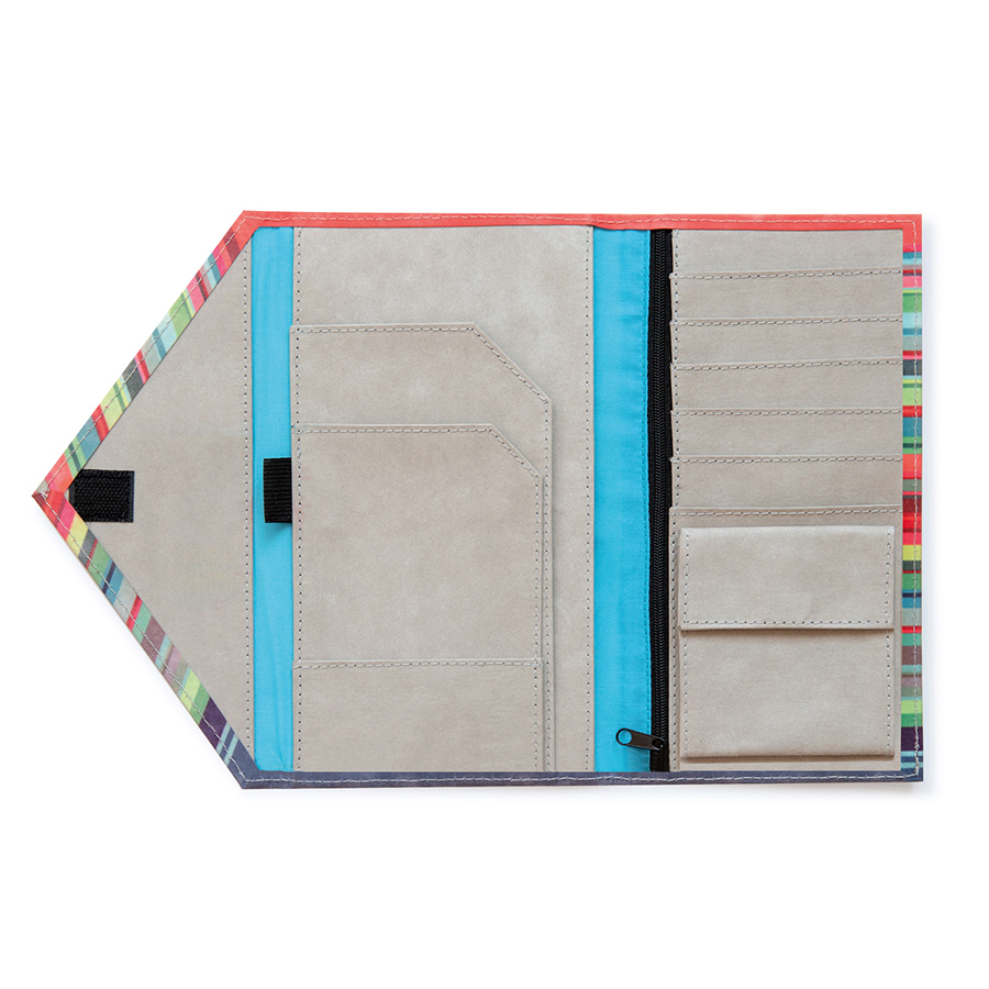 Органайзер для документов Micro Stripes – специально разработан, чтобы вдохновлять и наводить порядок в ваших документах. Аксессуар со стильным дизайном идеально подойдет для хранения билетов на самолет или поезд, карт города, визиток и денег. Органайзер из моющегося материала состоит из 6 слотов для кредиток, 4 больших карманов, петли для шариковой ручки, отделения для монет с застежкой на липучке и большого отделения на молнии.